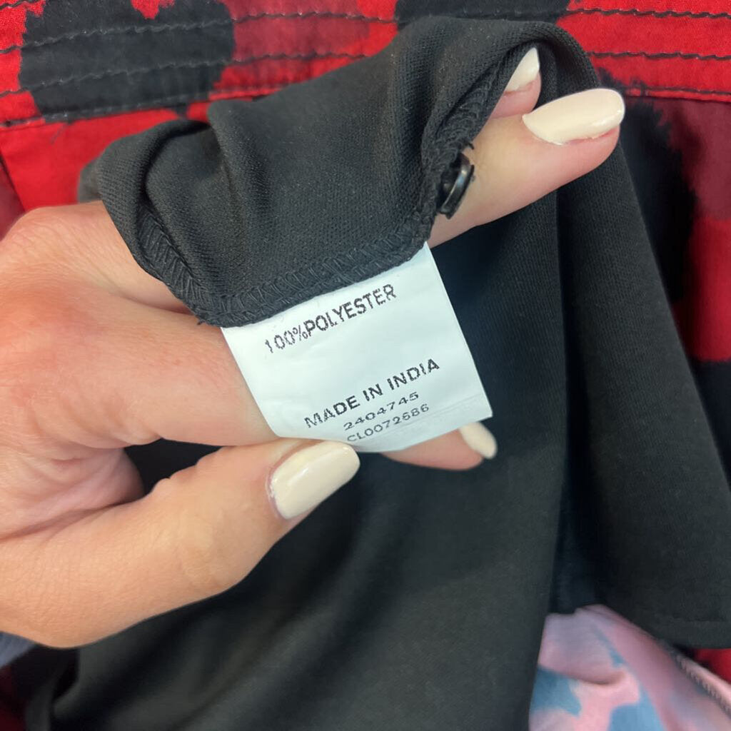 eShakti Red/ Black Print Long Sleeve Mock Neck Maxi Dress Medium