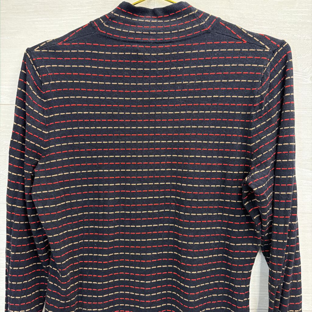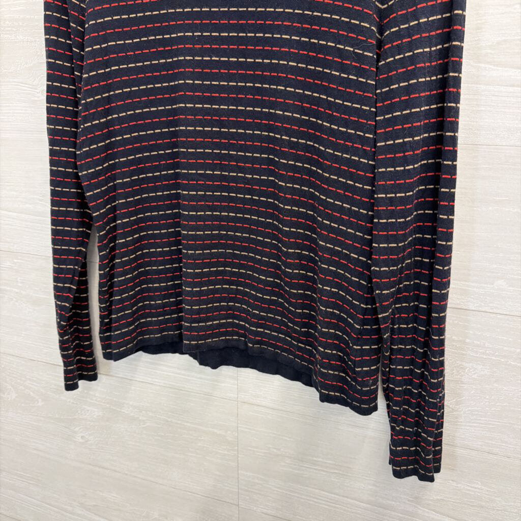 Etcetera Navy/ Multi Striped Long Sleeve Turtleneck Top Medium