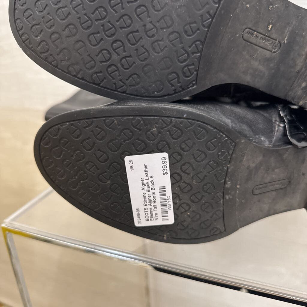 Etienne Aigner Black Leather Vira Tall Boots