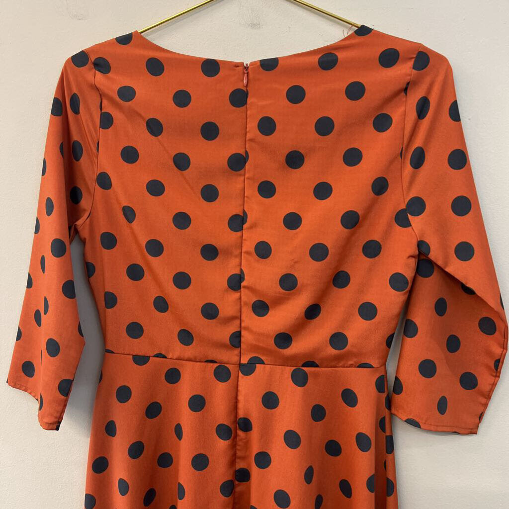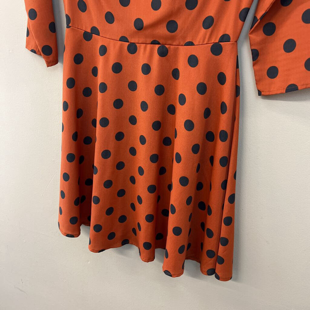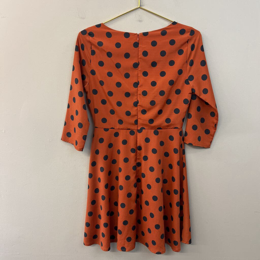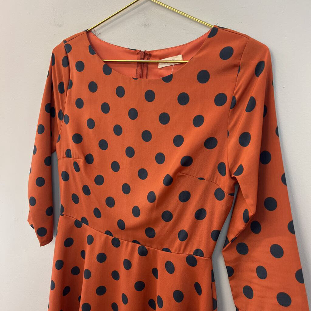 Everly Orange/ Navy Polka Dot Long Sleeve Dress Small