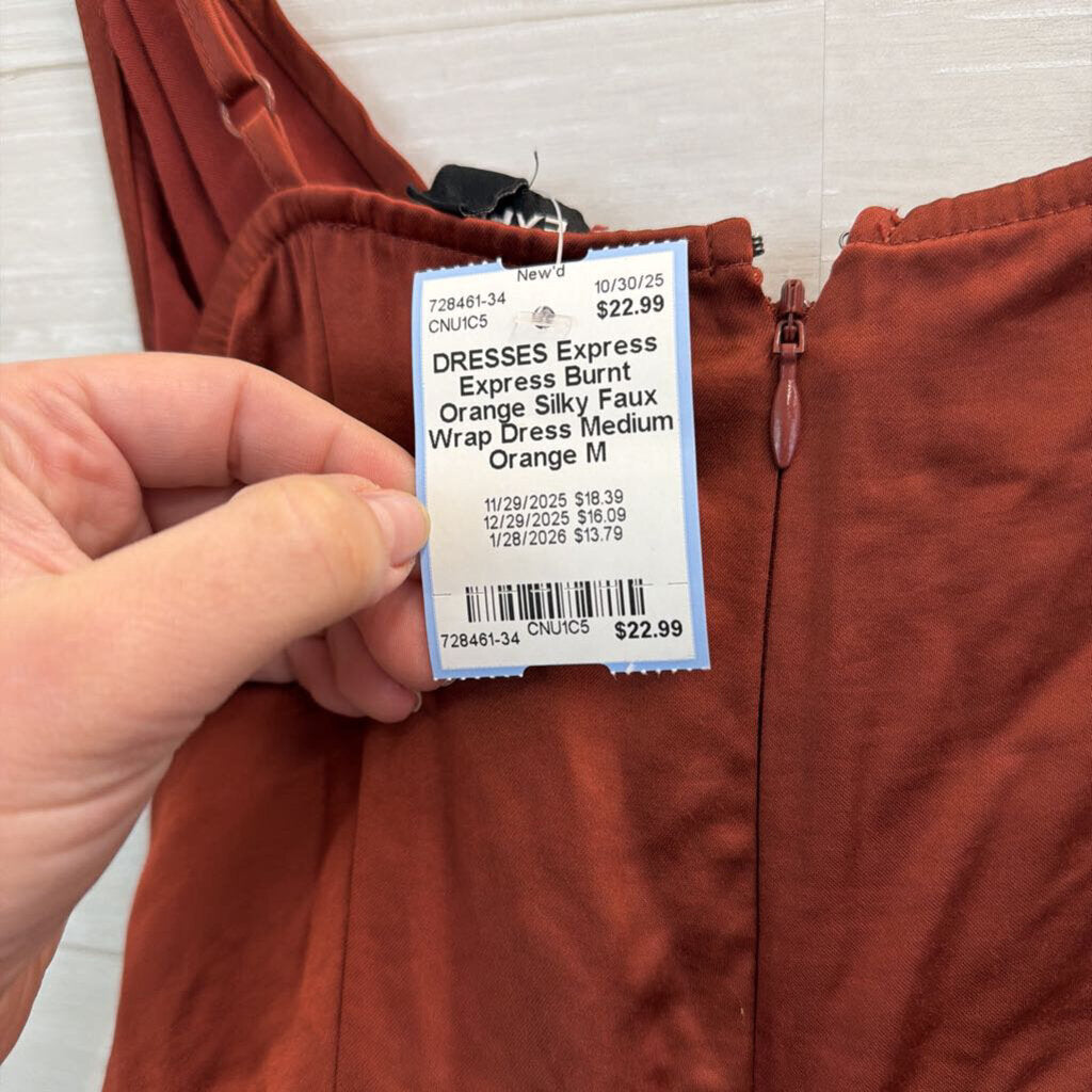 Express Burnt Orange Silky Faux Wrap Dress Medium