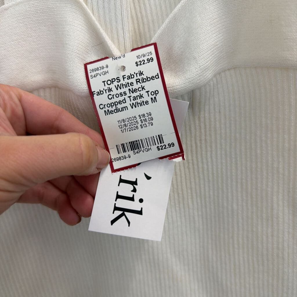 Fab'rik White Ribbed Cross Neck Cropped Tank Top Medium