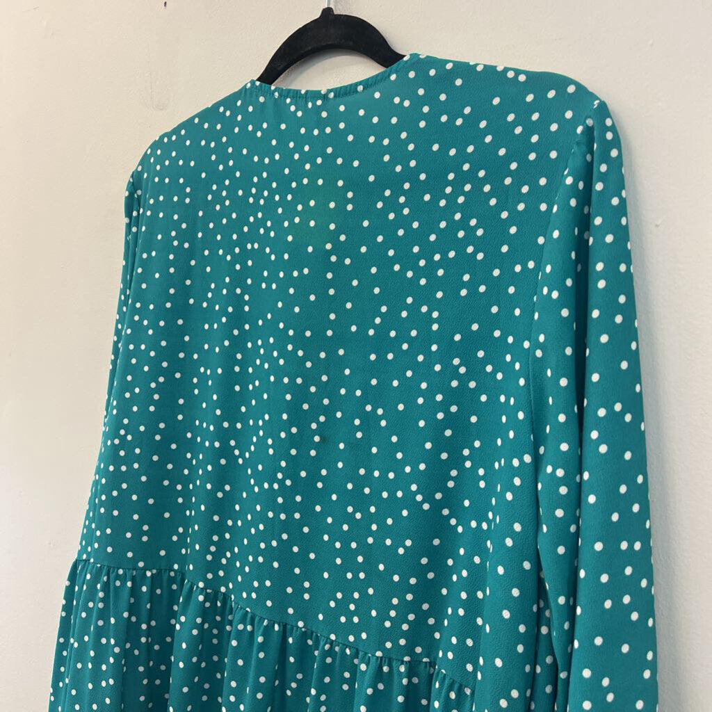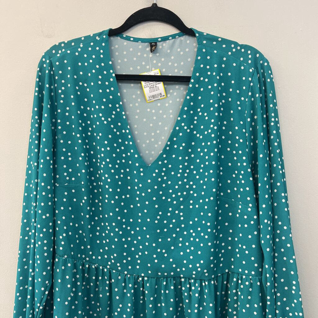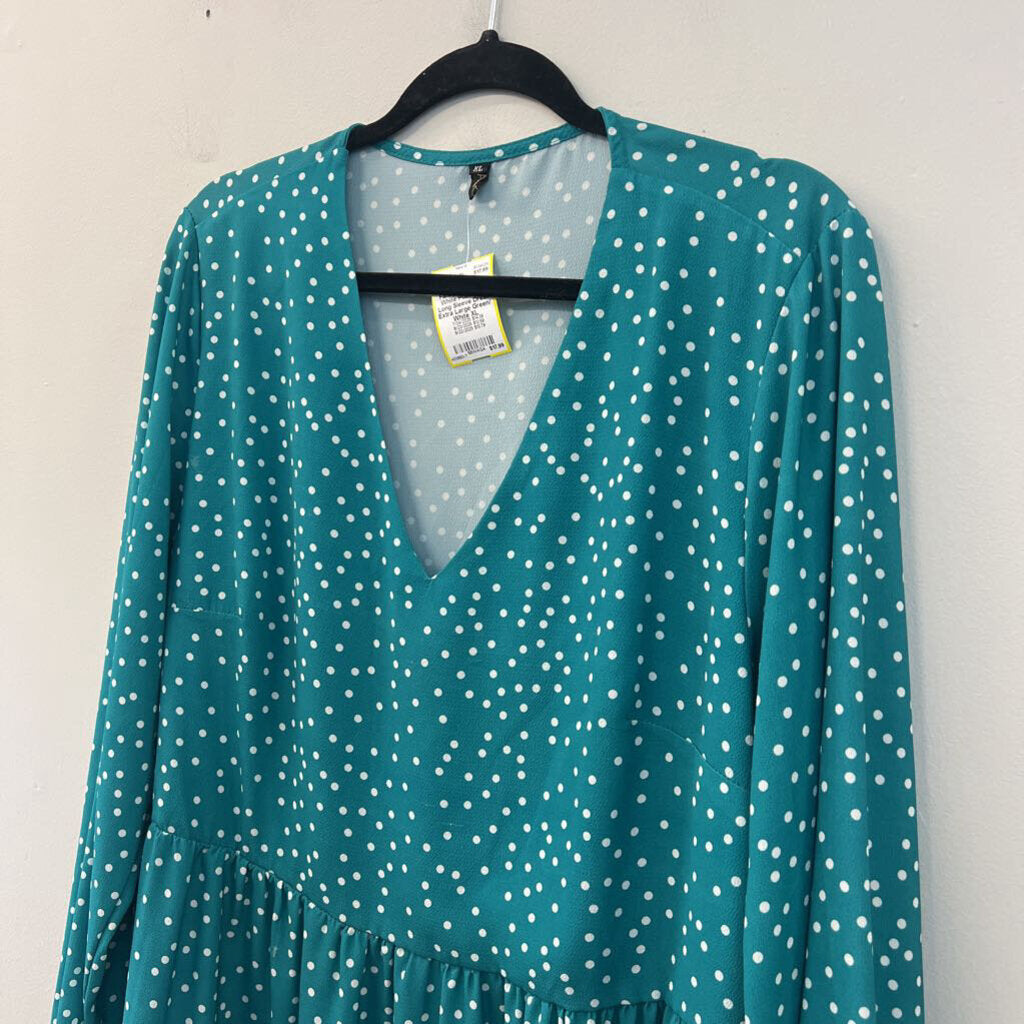 Fancy Inn Green/ White Polka Dot Long Sleeve Dress Extra Large