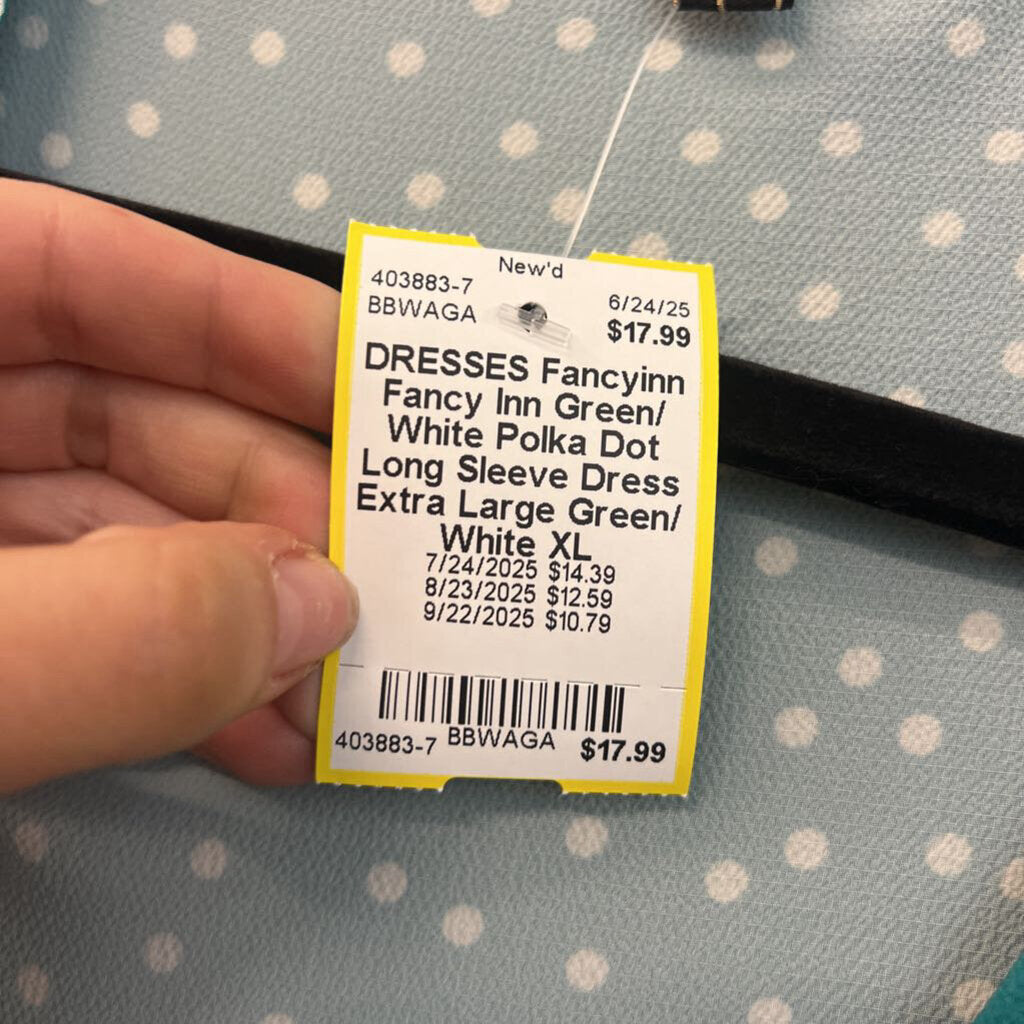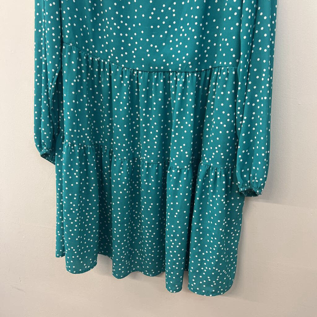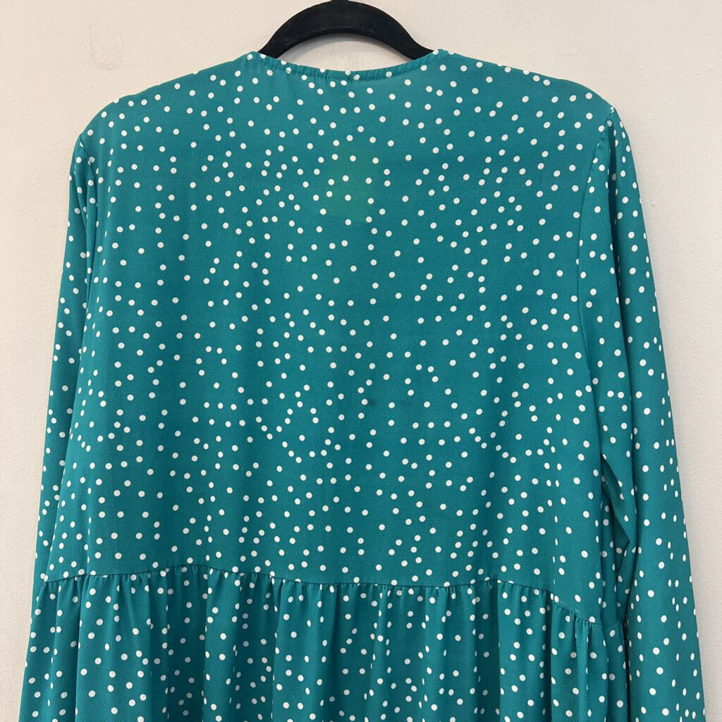 Fancy Inn Green/ White Polka Dot Long Sleeve Dress Extra Large