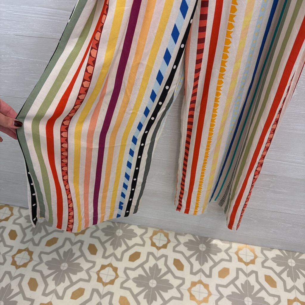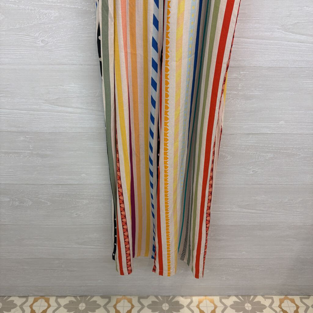 Farm Rio Cream/ Multi Striped Ellie Smocked Jumpsuit Large
