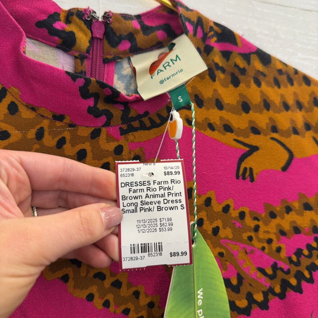 Farm Rio Pink/ Brown Animal Print Long Sleeve Dress Small
