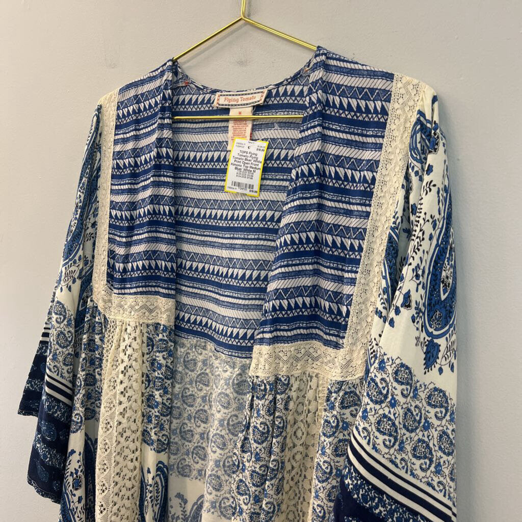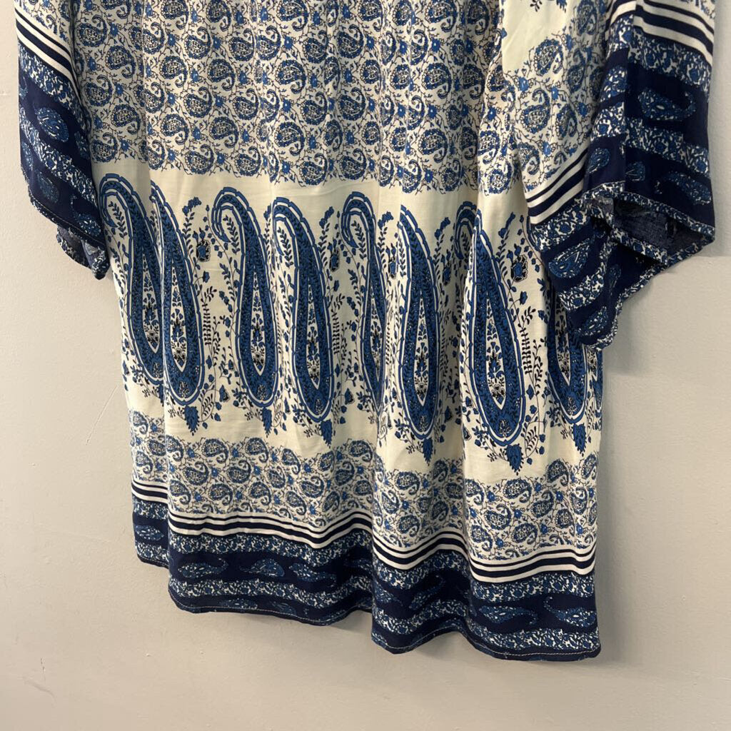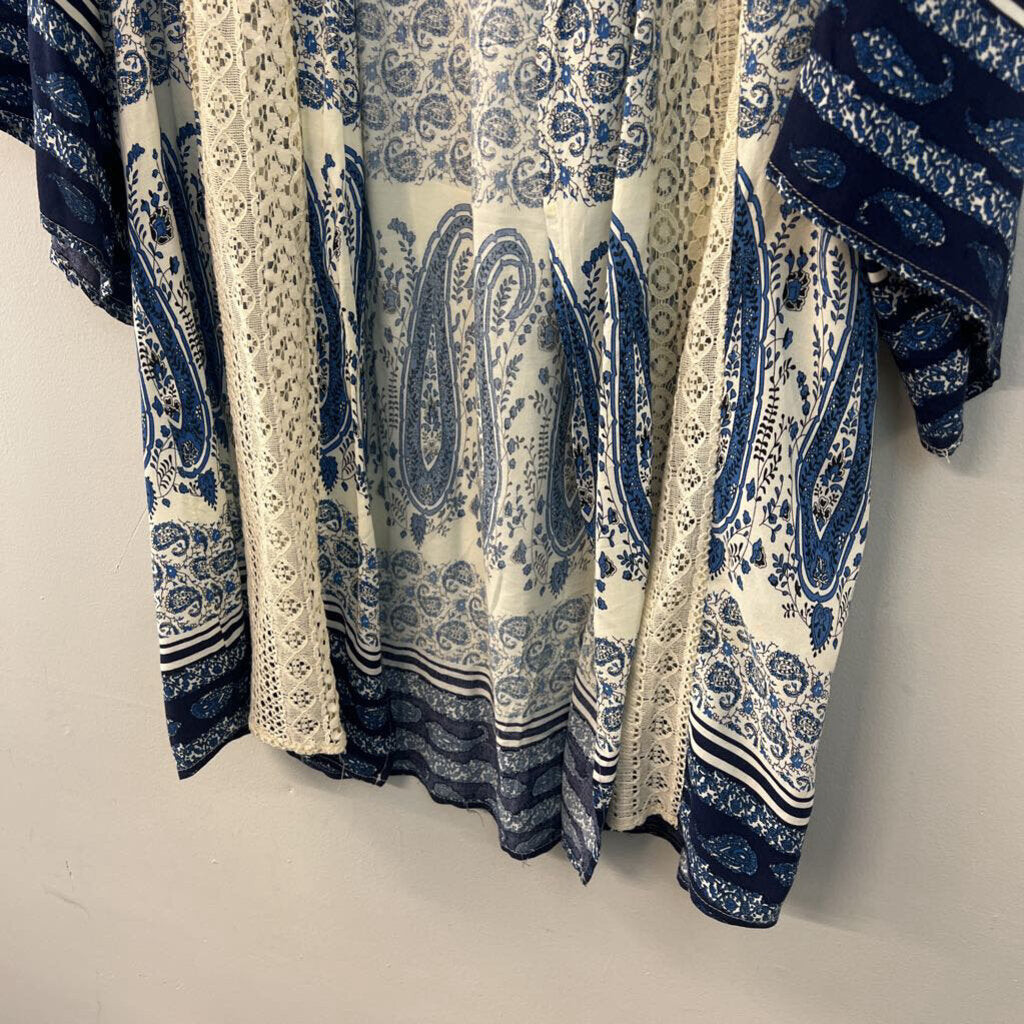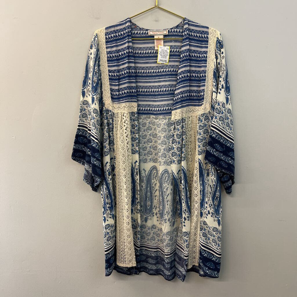 Flying Tomato Blue/ White Print Open Front Kimono Top Medium