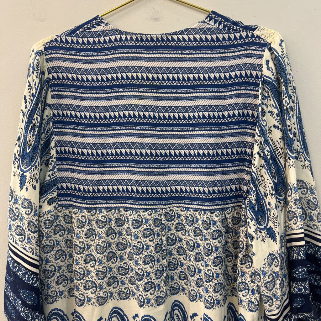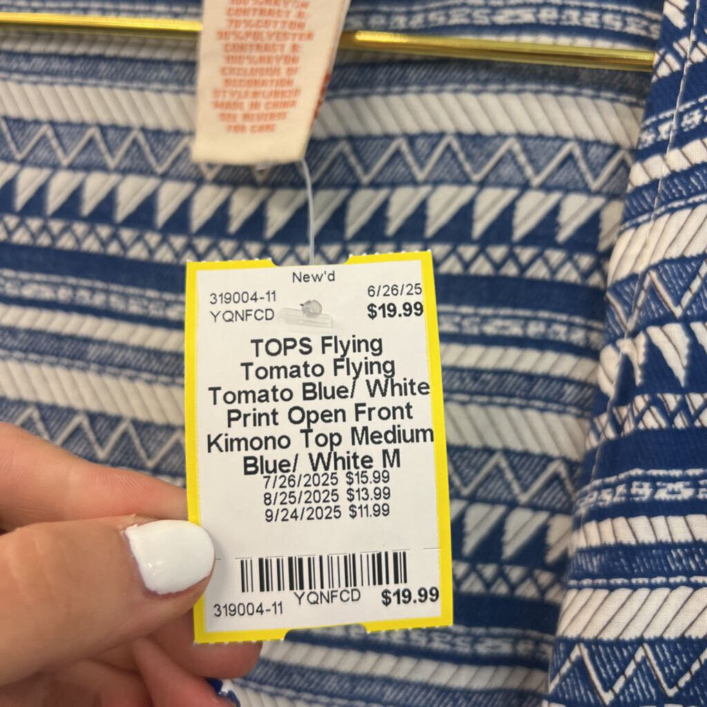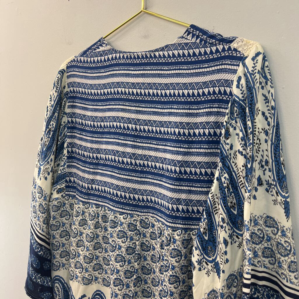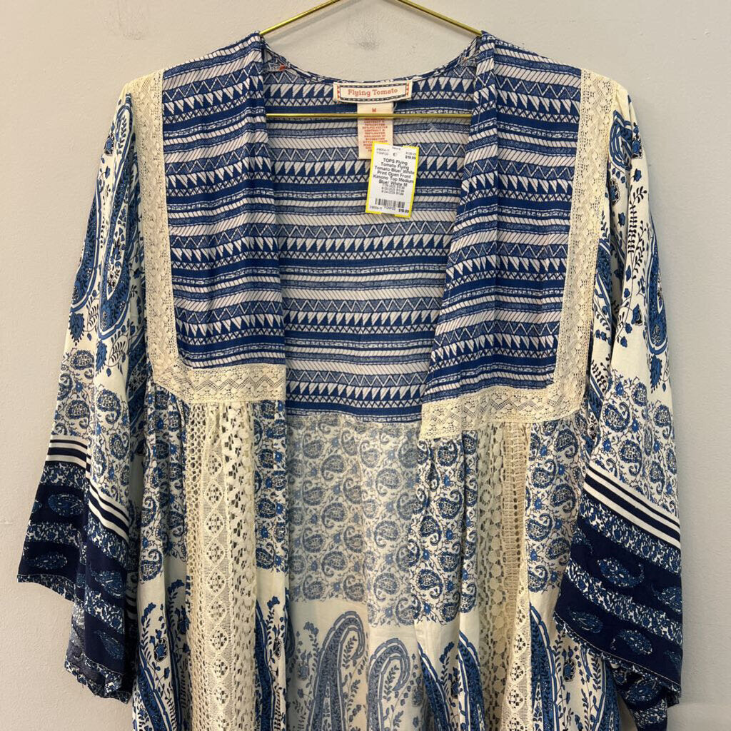 Flying Tomato Blue/ White Print Open Front Kimono Top Medium