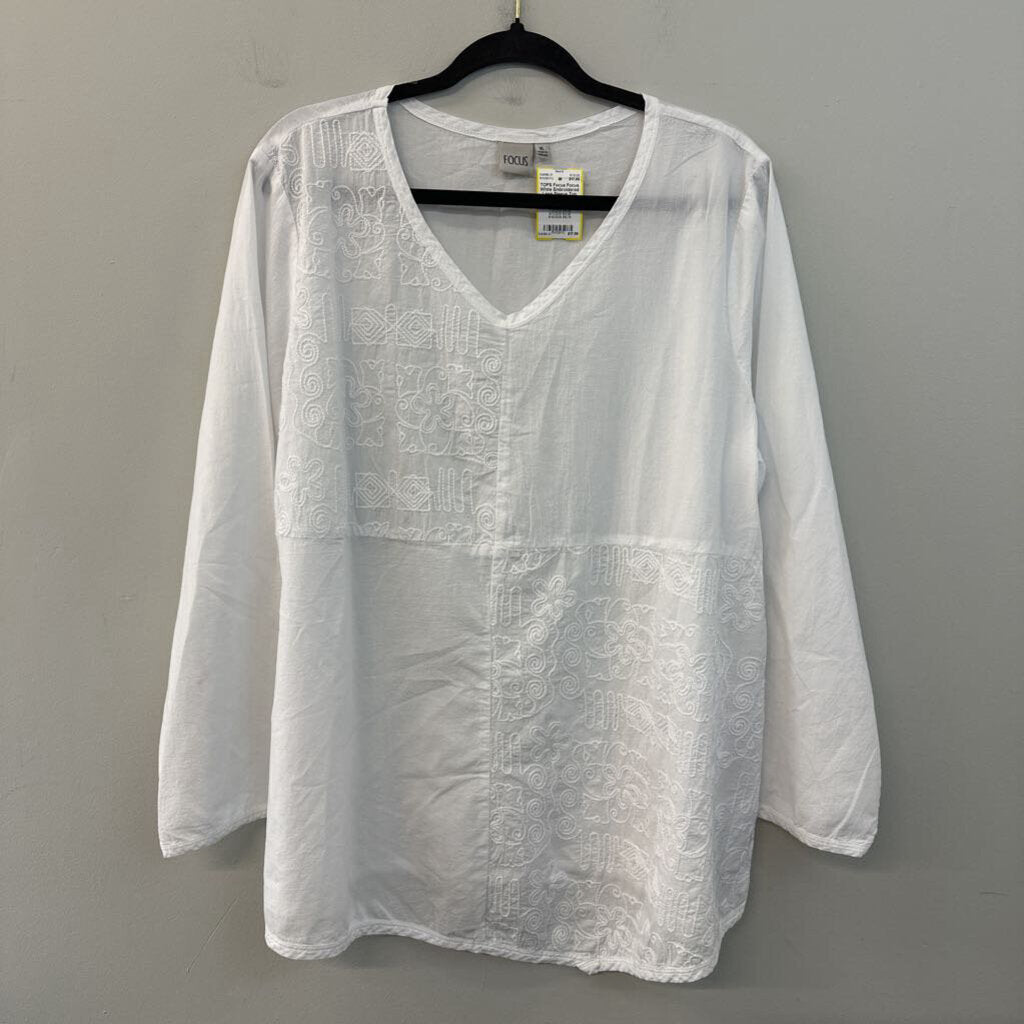 Focus White Embroidered Long Sleeve Top Extra Large
