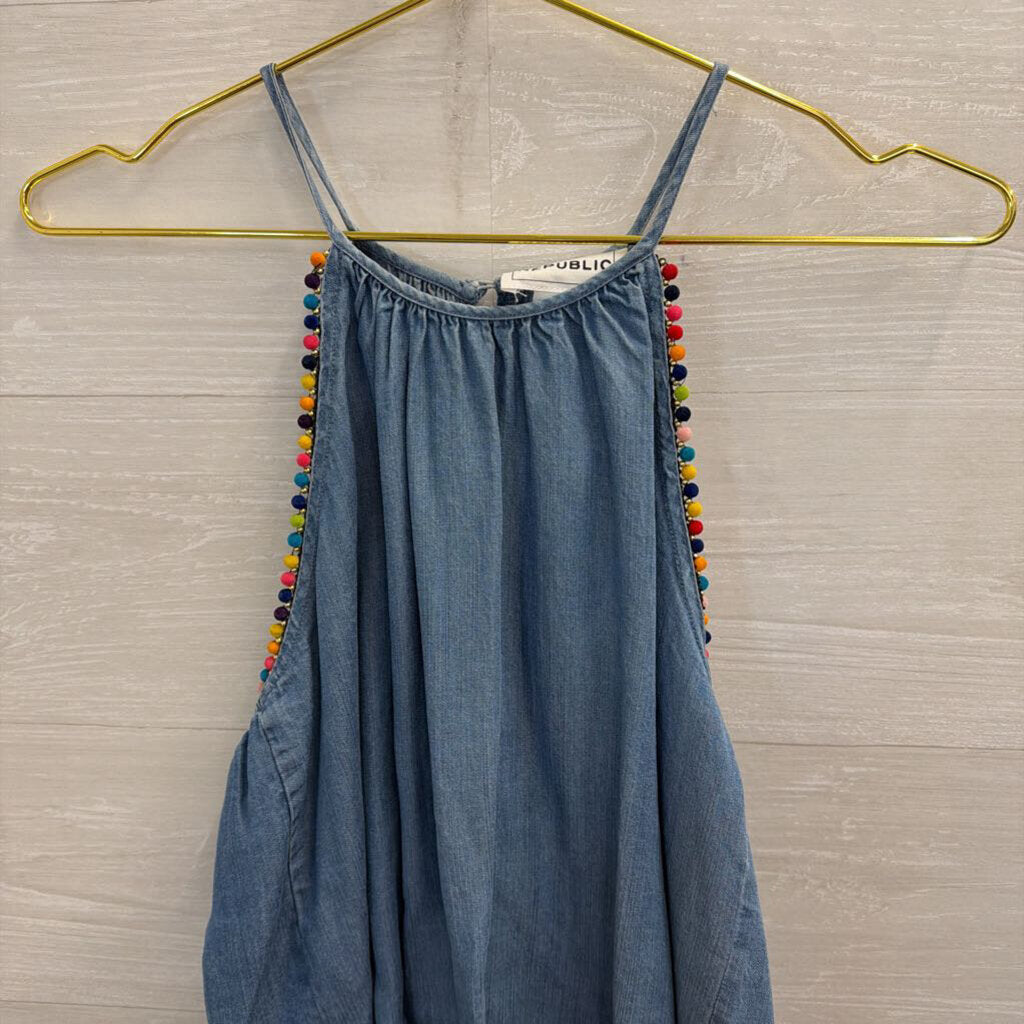 For The Republic Blue Chambray Multi Color Ball Strap Tank Top Medium