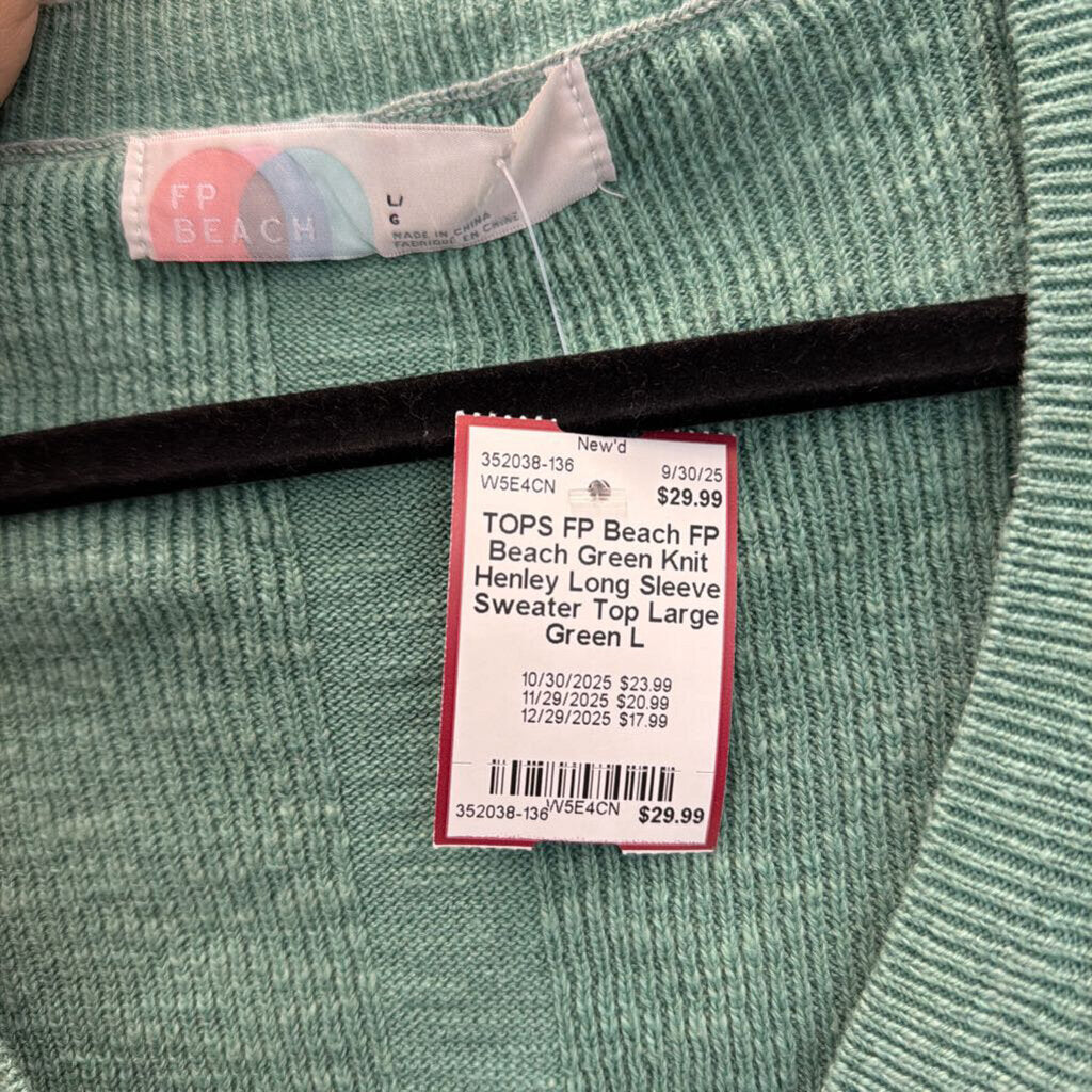 FP Beach Green Knit Henley Long Sleeve Sweater Top Large