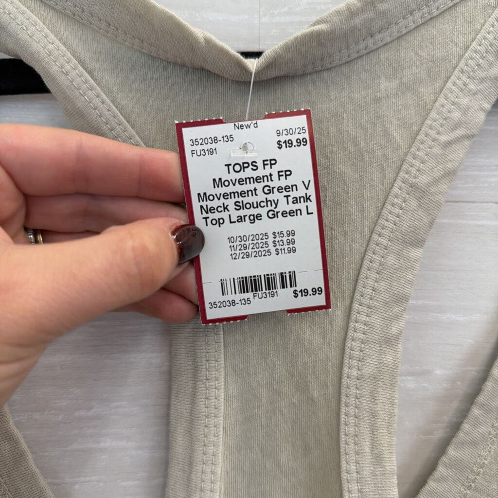 FP Movement Green V Neck Slouchy Tank Top Large