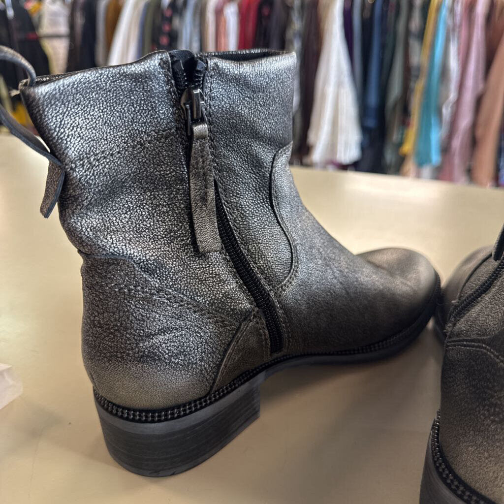 Franco Sarto Metallic Silver Leather Ankle Boots 7