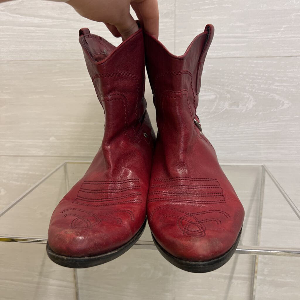 Franco Sarto Red Leather Waco Short Western Boots 10