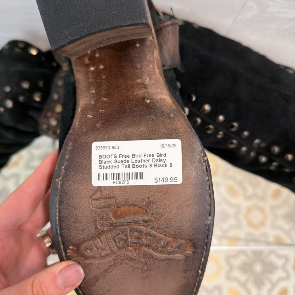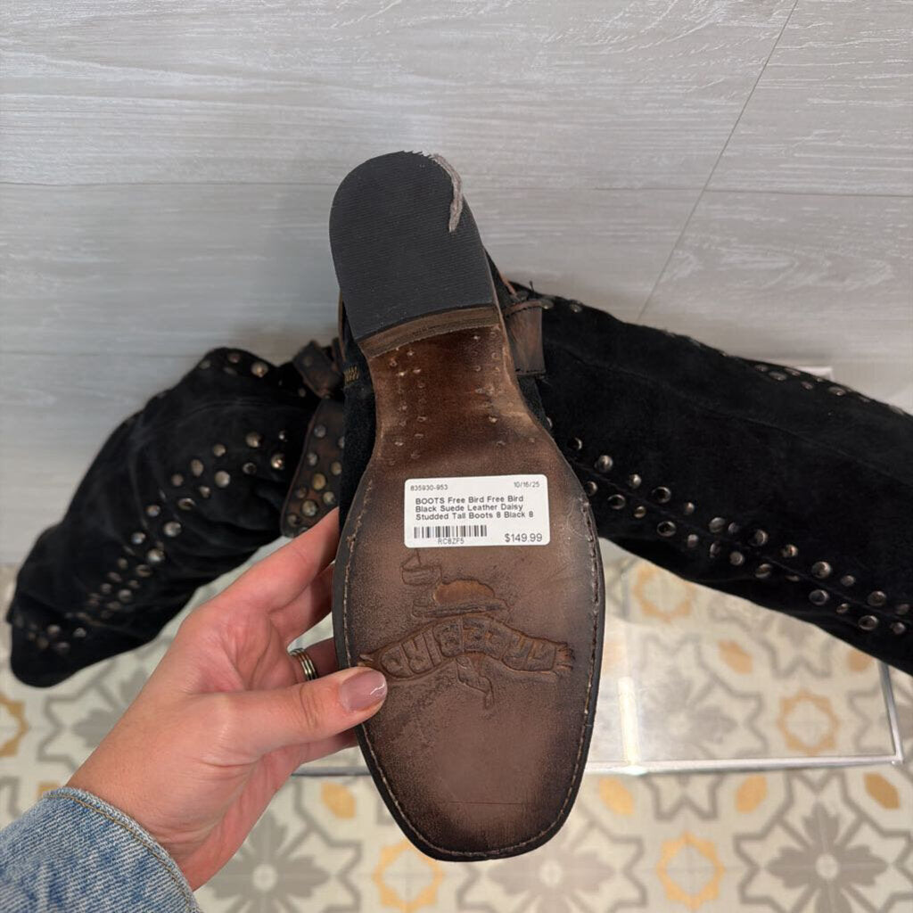 Free Bird Black Suede Leather Daisy Studded Tall Boots 8