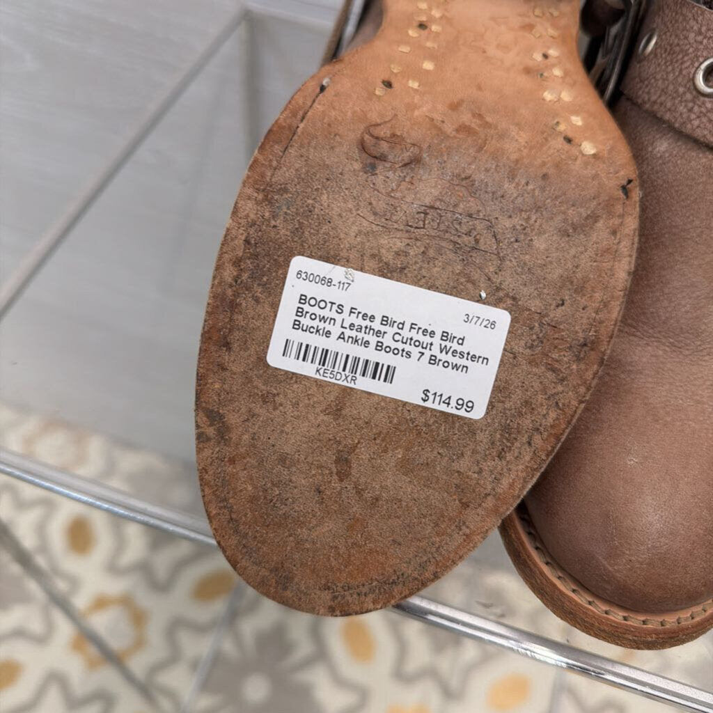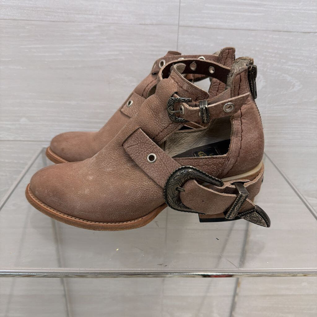Free Bird Brown Leather Cutout Western Buckle Ankle Boots 7