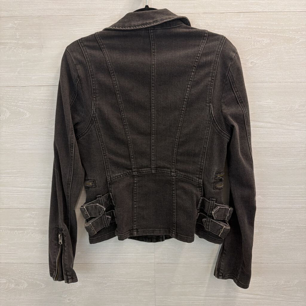 Free People Black Denim Bucket Detail Moto Jacket 4
