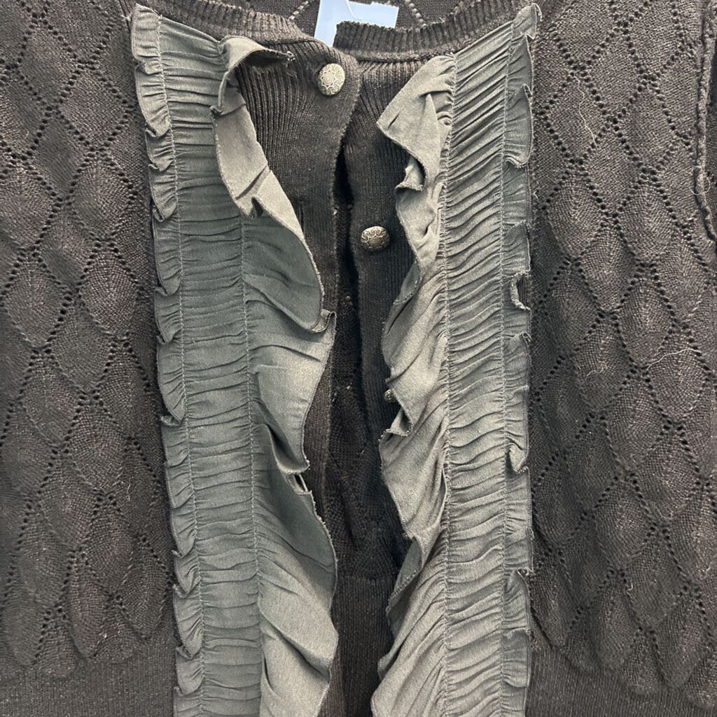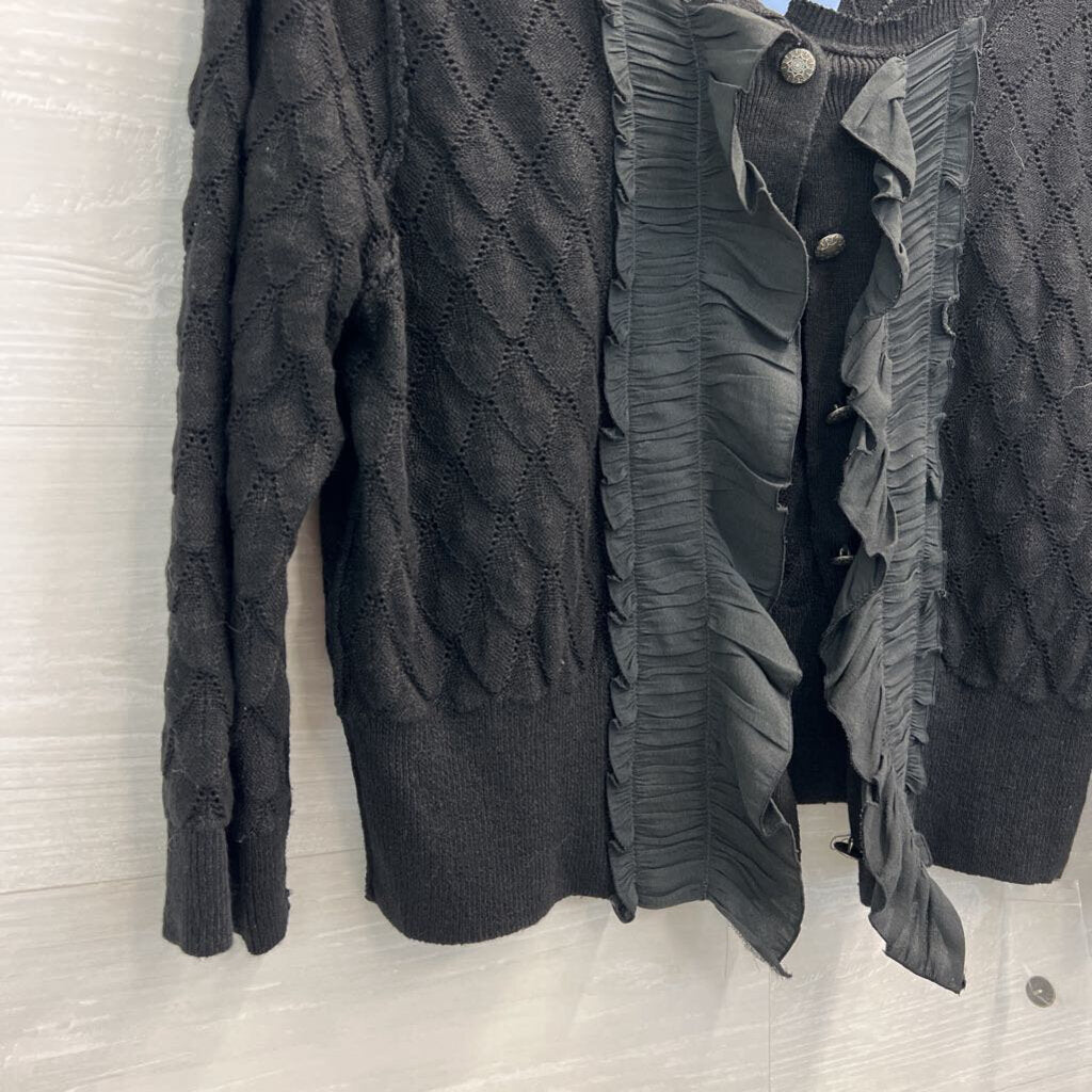 Free People Black Open Knit Cropped Ruffle Detail Cardigan Sweater Large