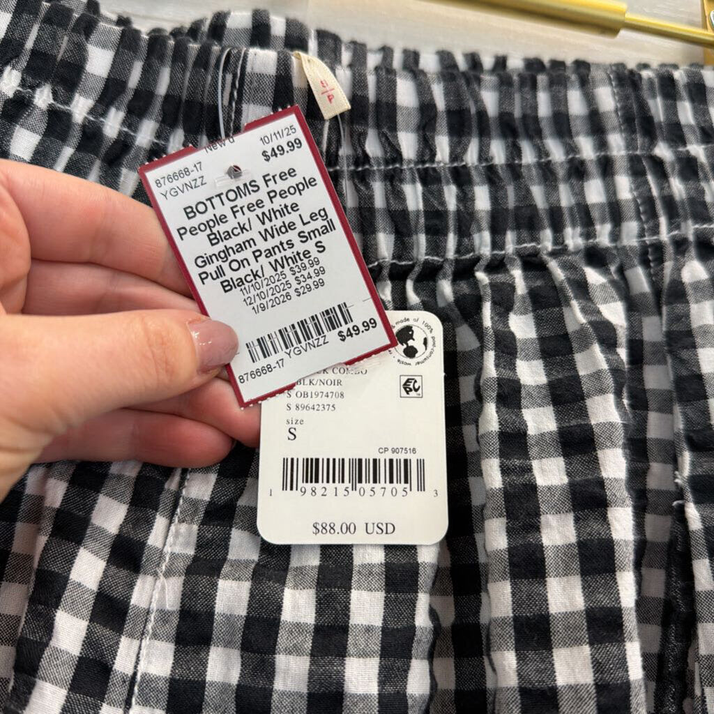 Free People Black/ White Gingham Wide Leg Pull On Pants Small