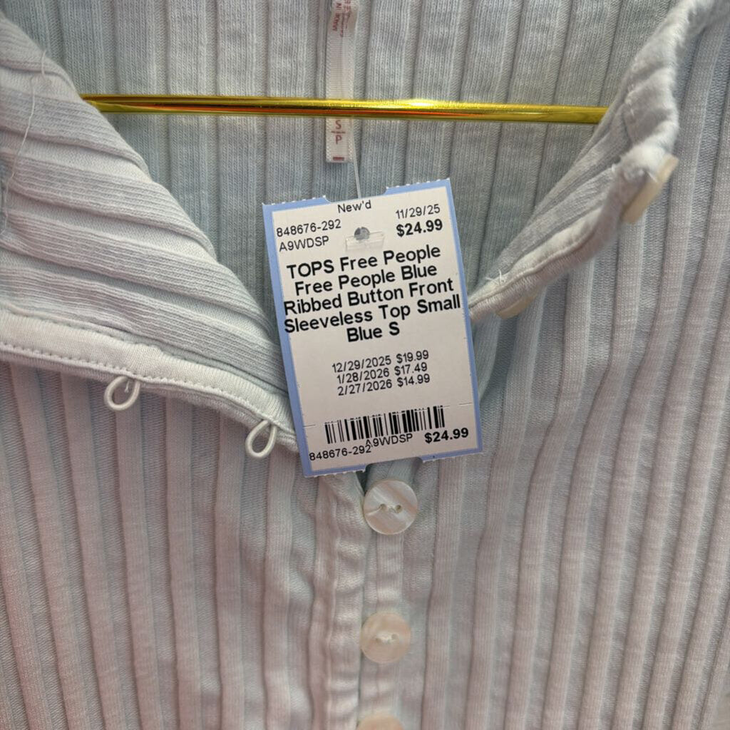 Free People Blue Ribbed Button Front Sleeveless Top Small