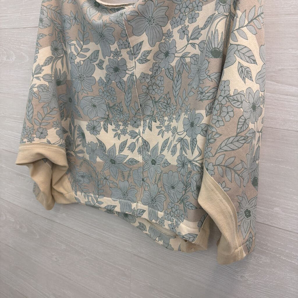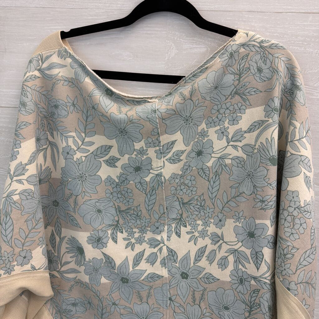 Free People Blue/ White Flower Print Boxy Sweatshirt Top Extra Small