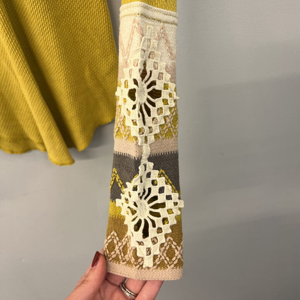 Free People Green Textured Embroidered Detail Long Sleeve Top Small
