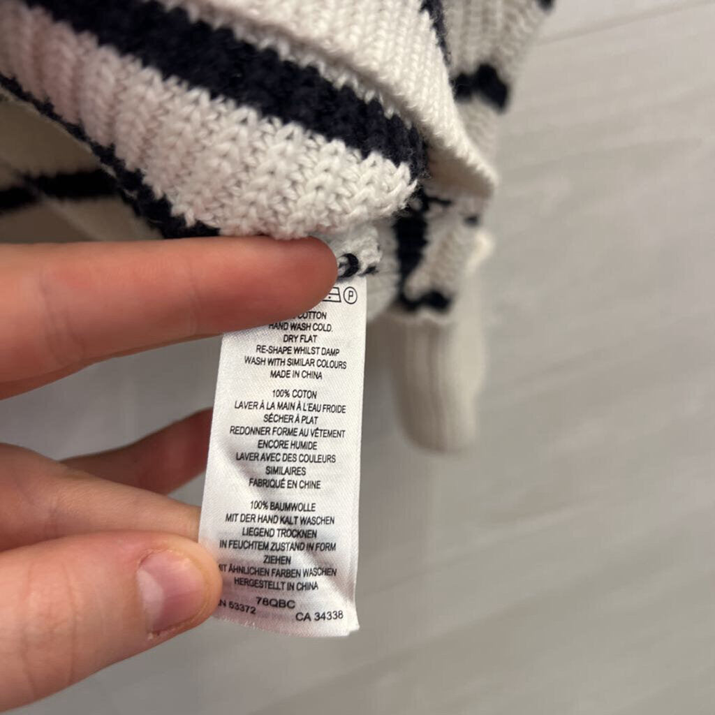 French Connection White/ Black Striped Knit Long Sleeve Sweater Top Small