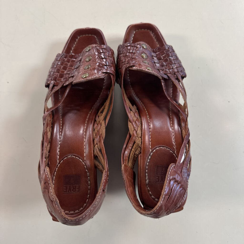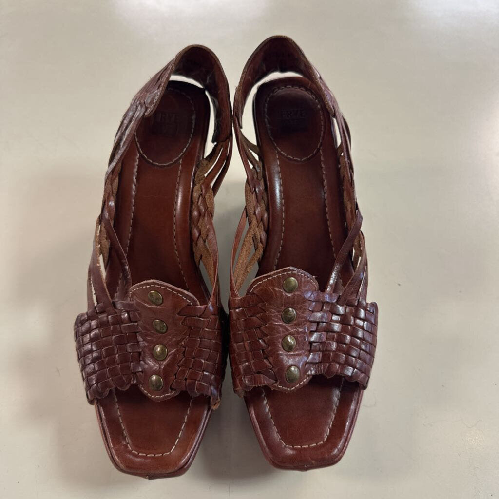 Frye Brown Leather Lola Studded Sling Wedge Shoes 9