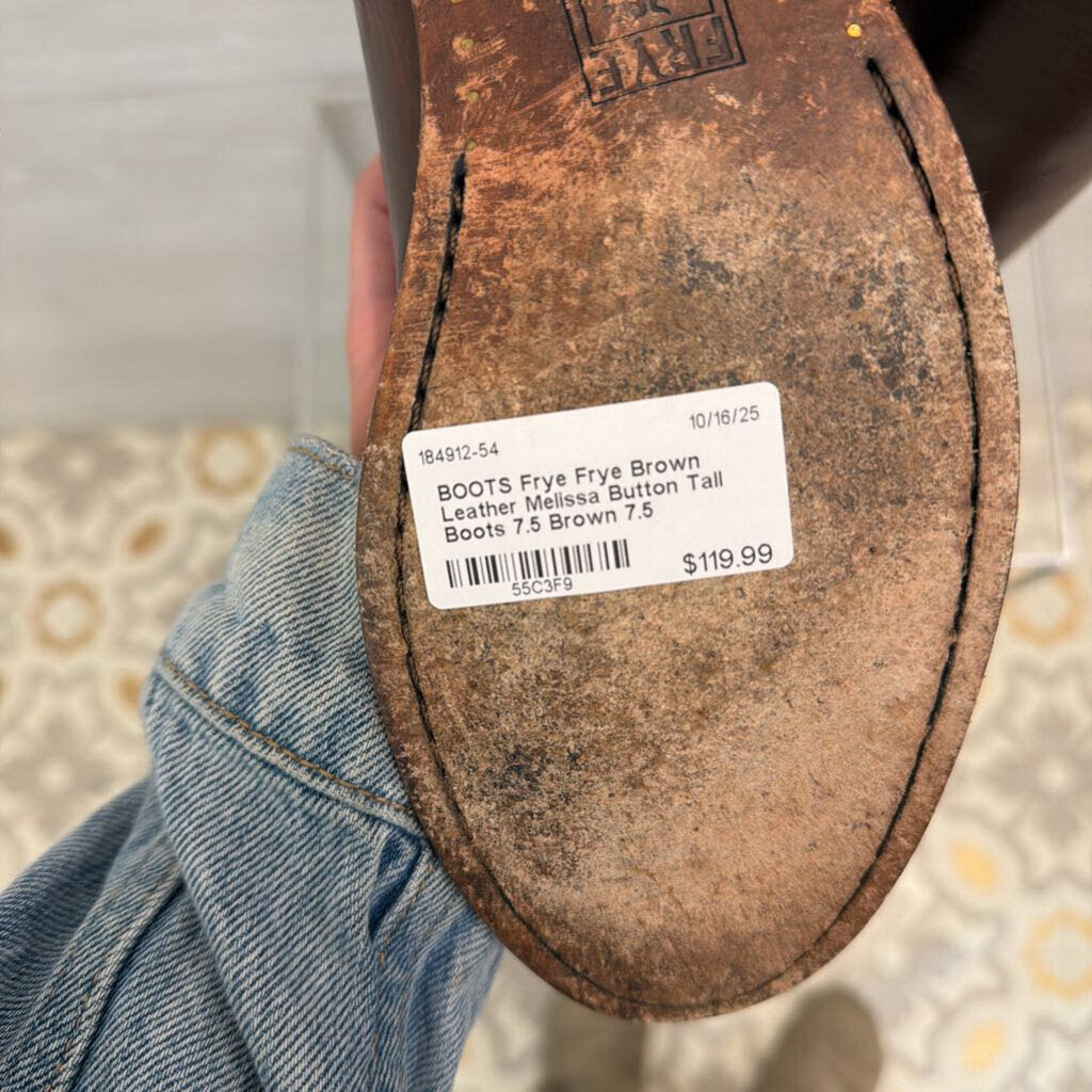 Frye Brown Leather Melissa Button Tall Boots 7.5