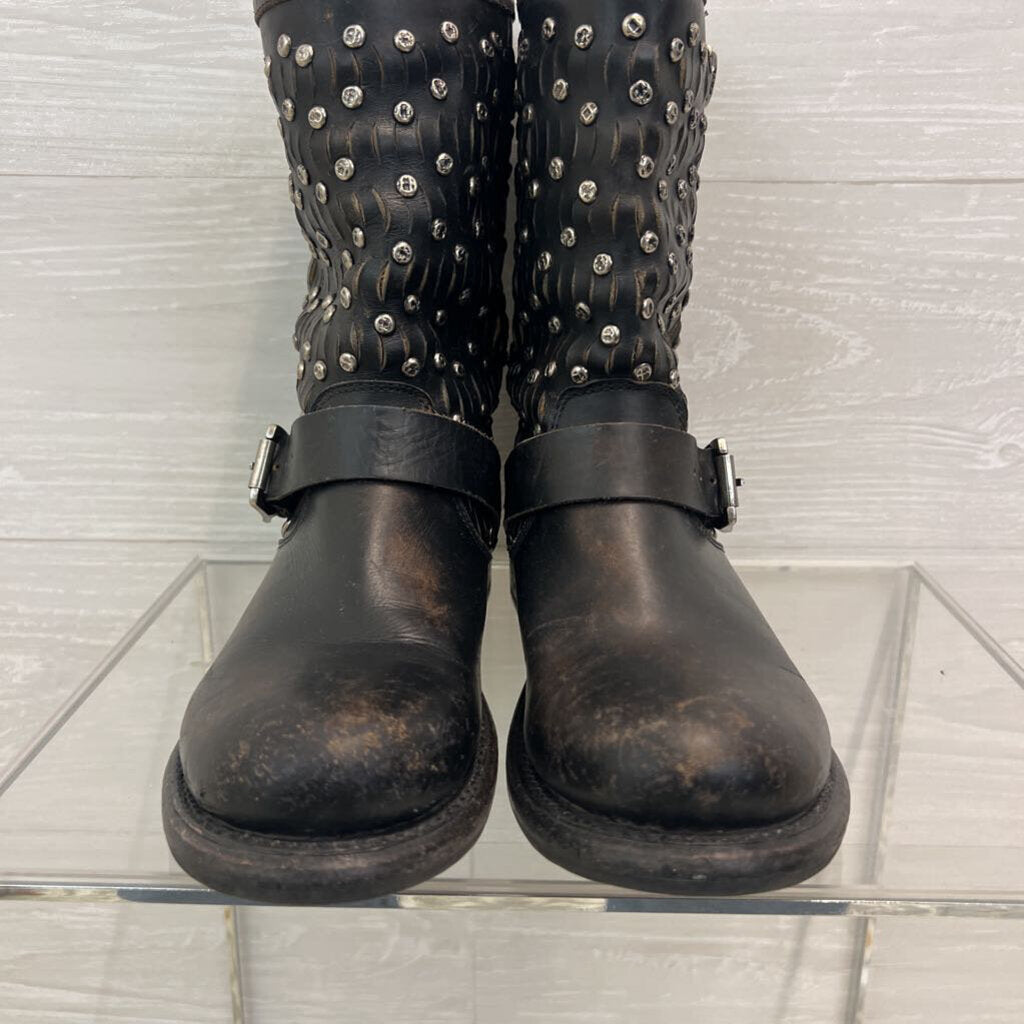 Frye Distressed Leather Jenna Cut Stud Short Moto Boots 8.5