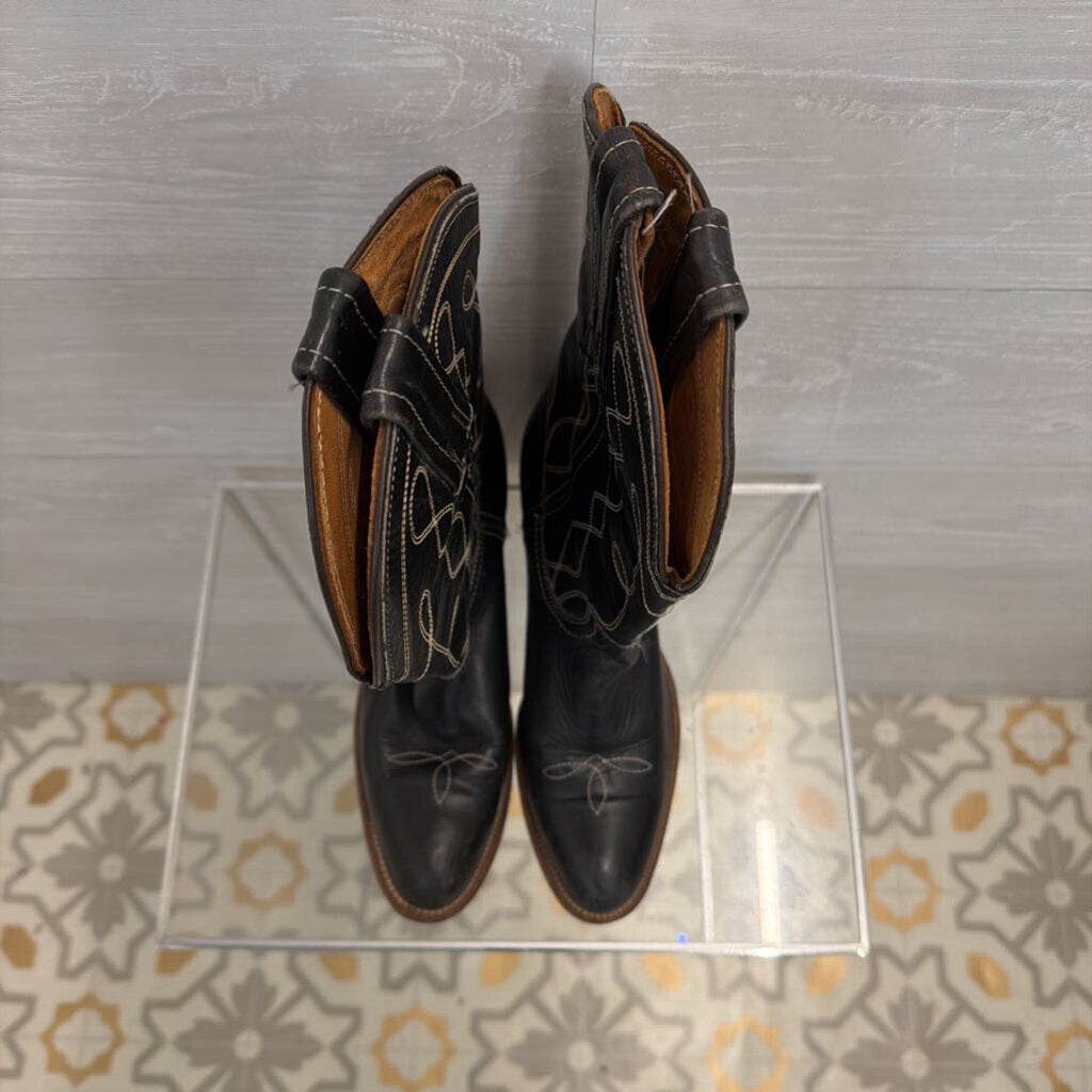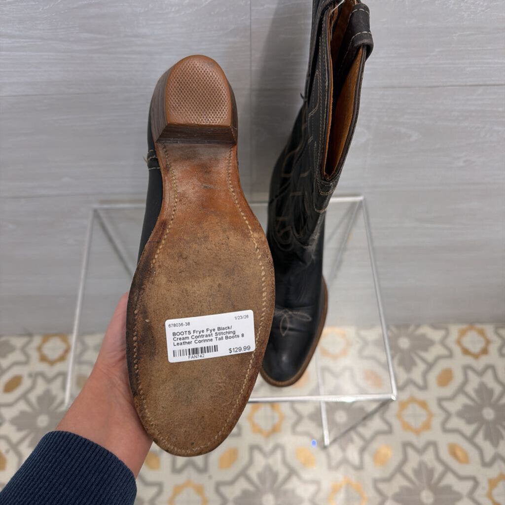 Fye Black/ Cream Contrast Stitching Leather Corinne Tall Boots 8