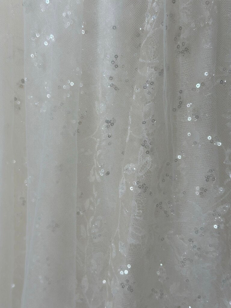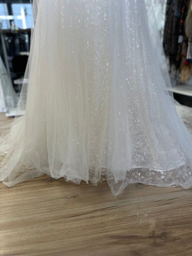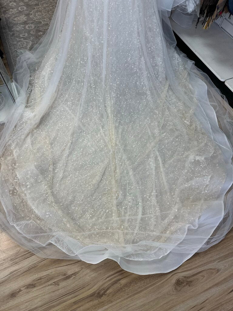 Galina Signature Ivory/ Lt Gold Sequin Beaded V Neck A Line Bridal Gown 14