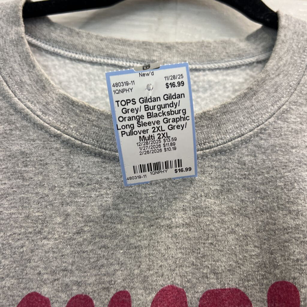 Gildan Grey/ Burgundy/ Orange Blacksburg Long Sleeve Graphic Pullover 2XL