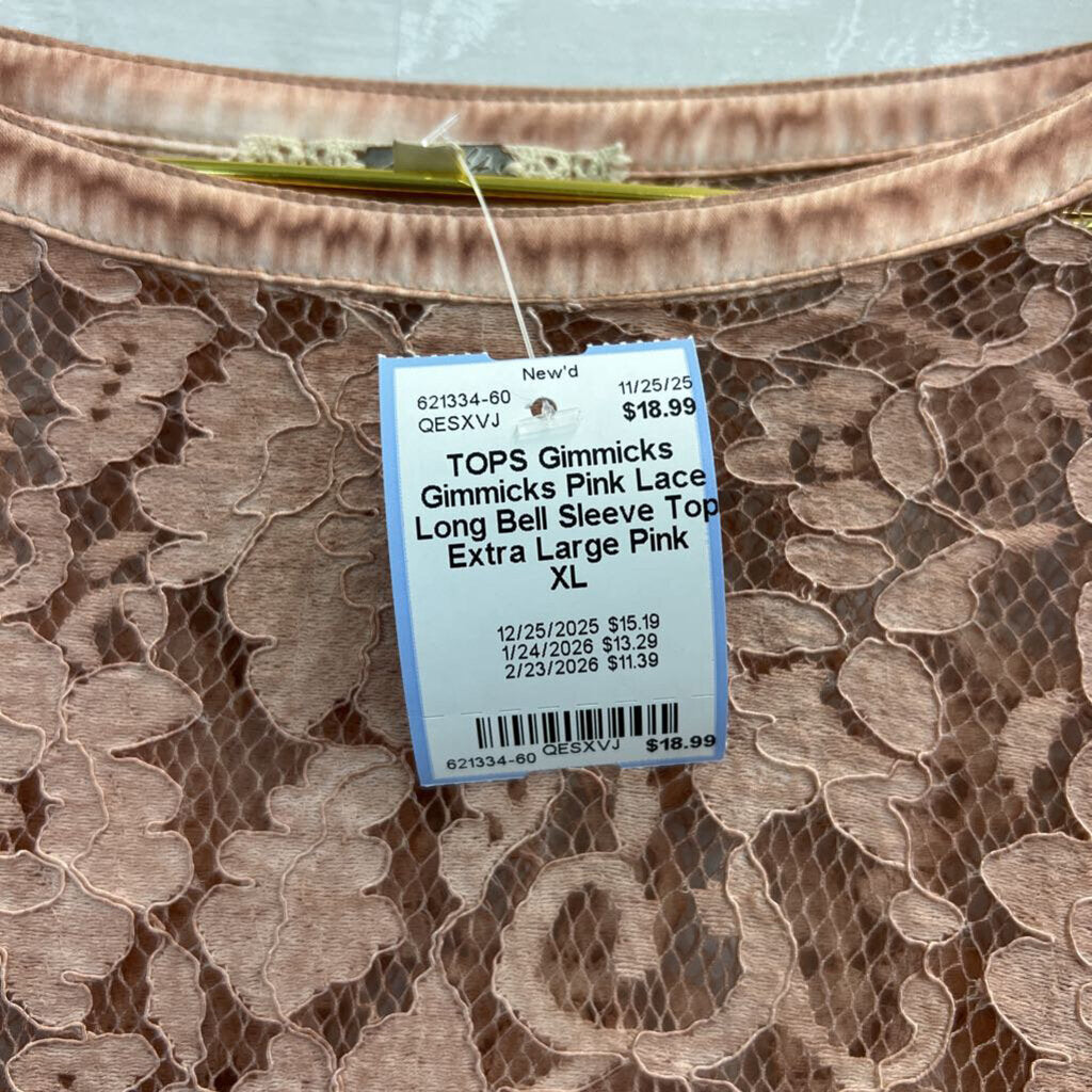 Gimmicks Pink Lace Long Bell Sleeve Top Extra Large