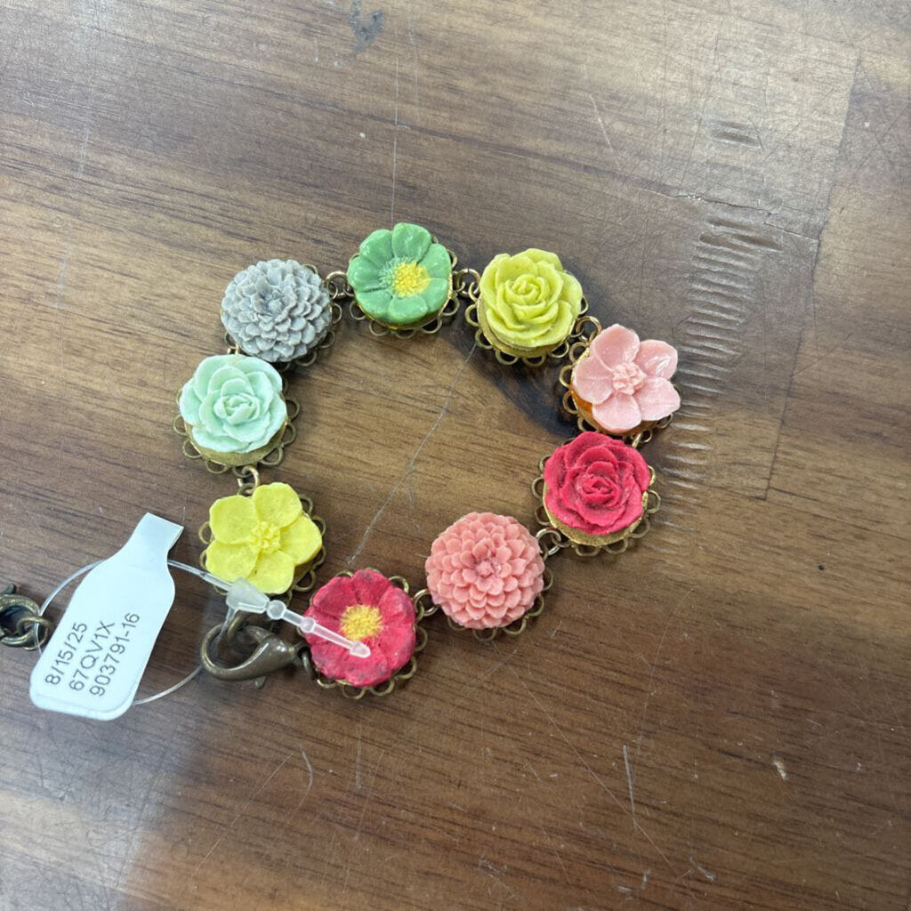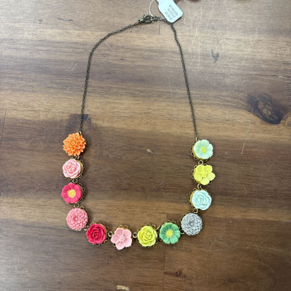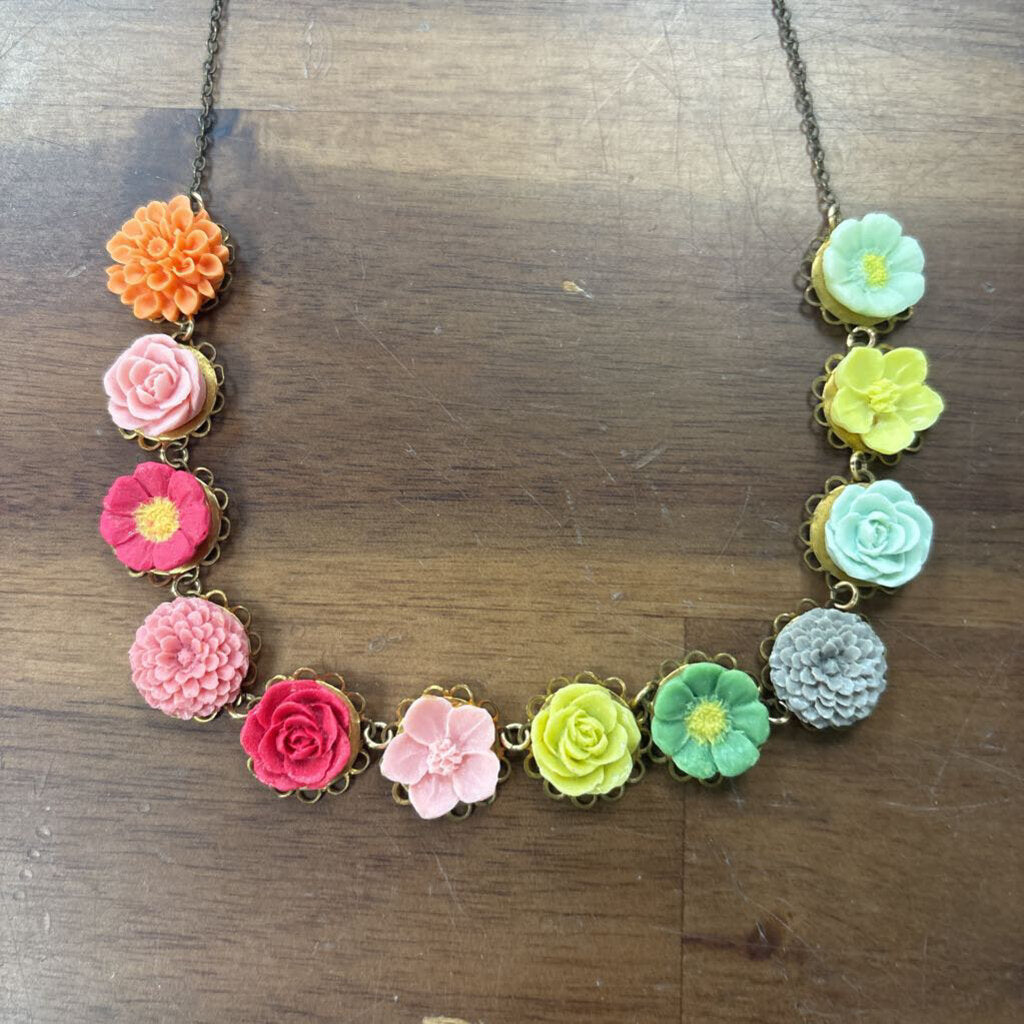 Gold/ Multi 3D Flower Necklace/ Bracelet Set