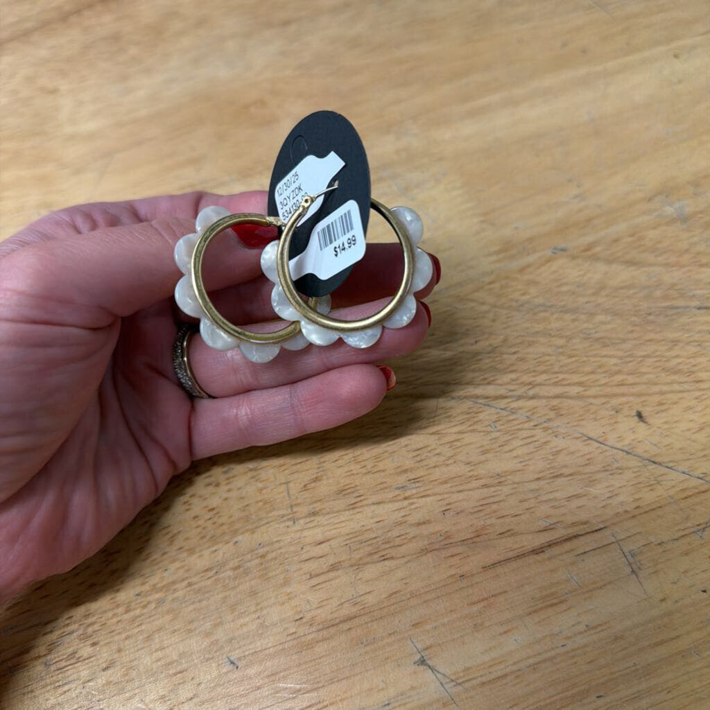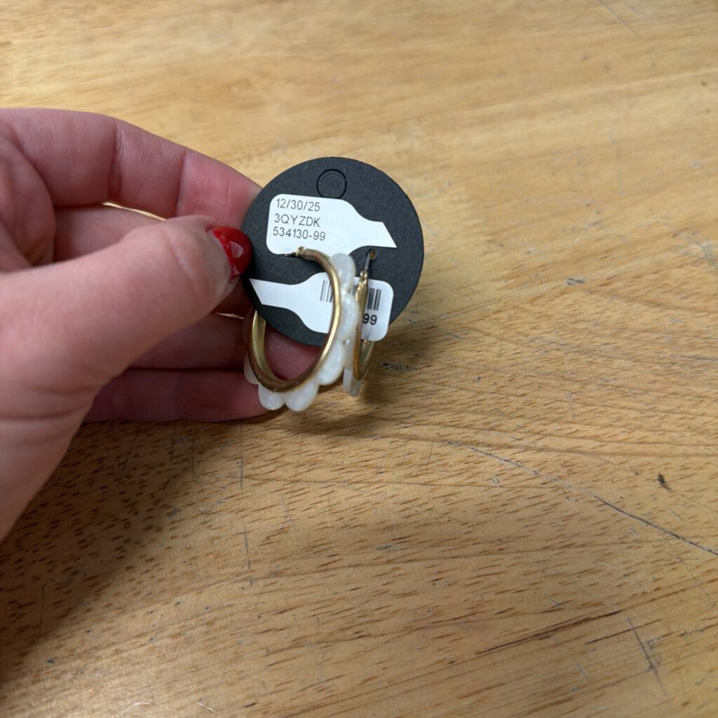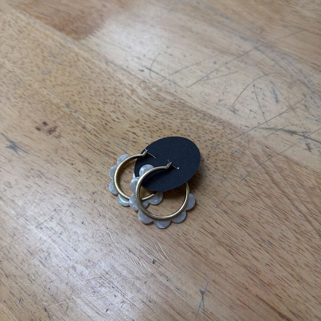 Gold Tone Hoop Flower Petal Earrings