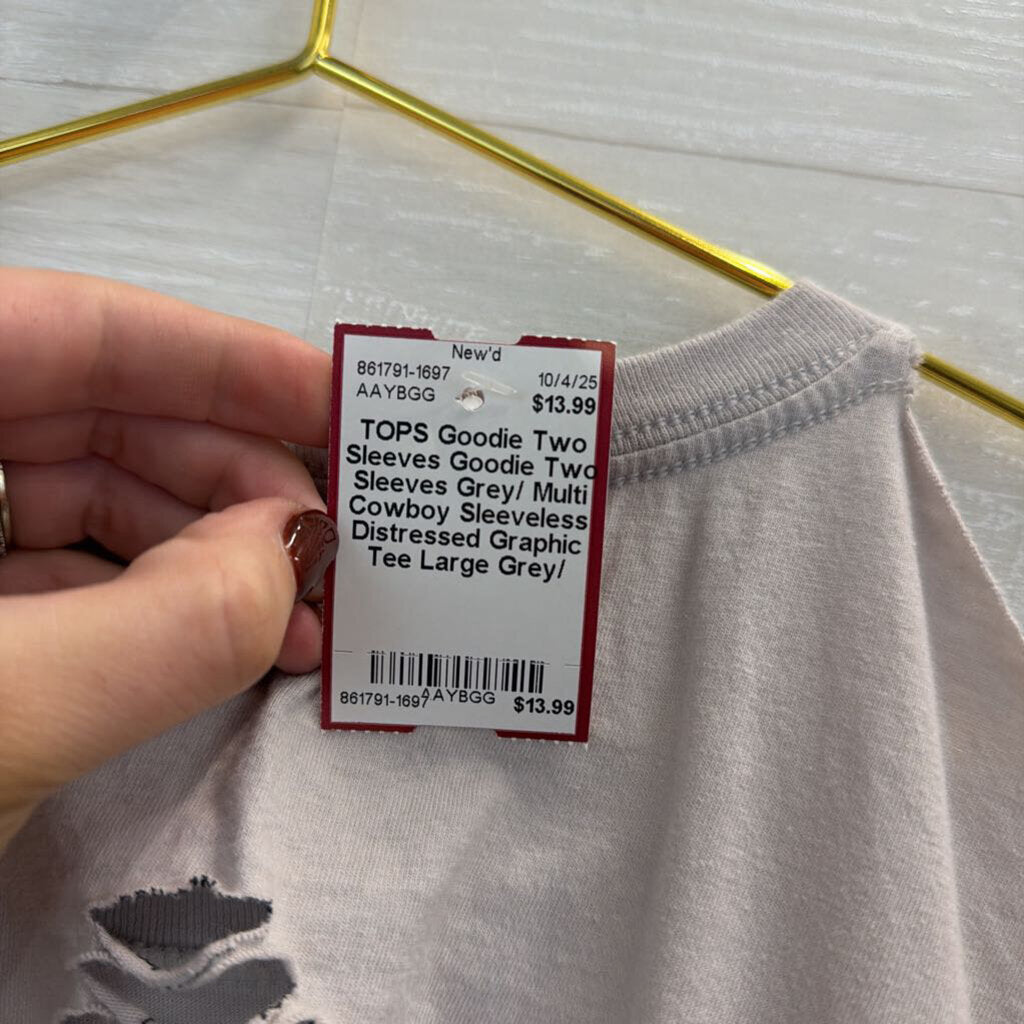 Goodie Two Sleeves Grey/ Multi Cowboy Sleeveless Distressed Graphic Tee Large