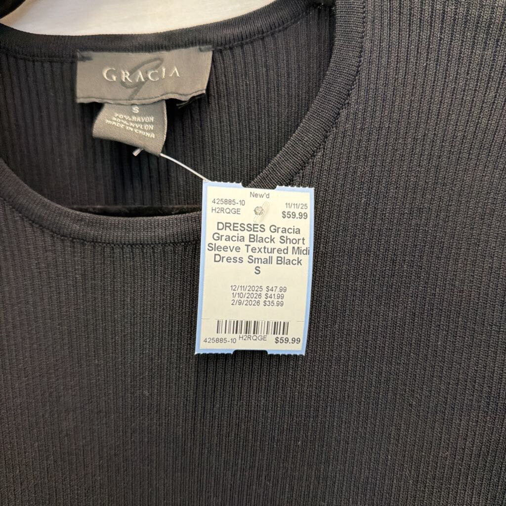 Gracia Black Short Sleeve Textured Midi Dress Small