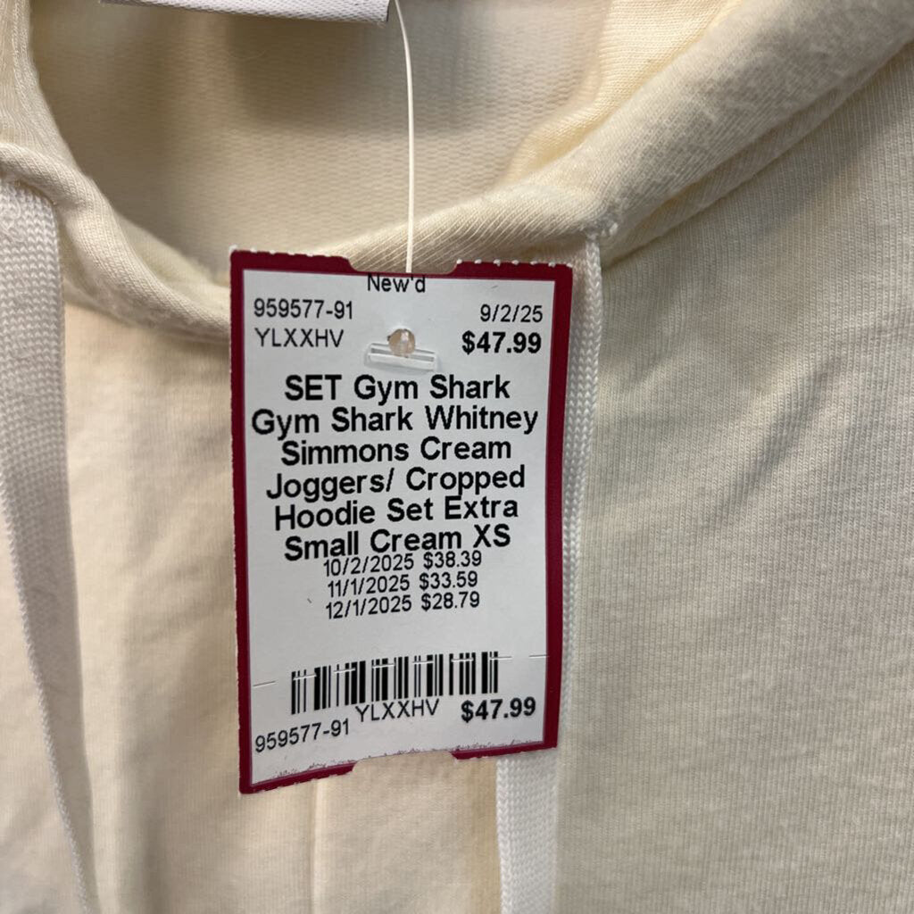 Gym Shark Whitney Simmons Cream Joggers/ Cropped Hoodie Set Extra Small