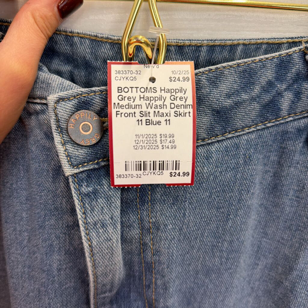 Happily Grey Medium Wash Denim Front Slit Maxi Skirt 11