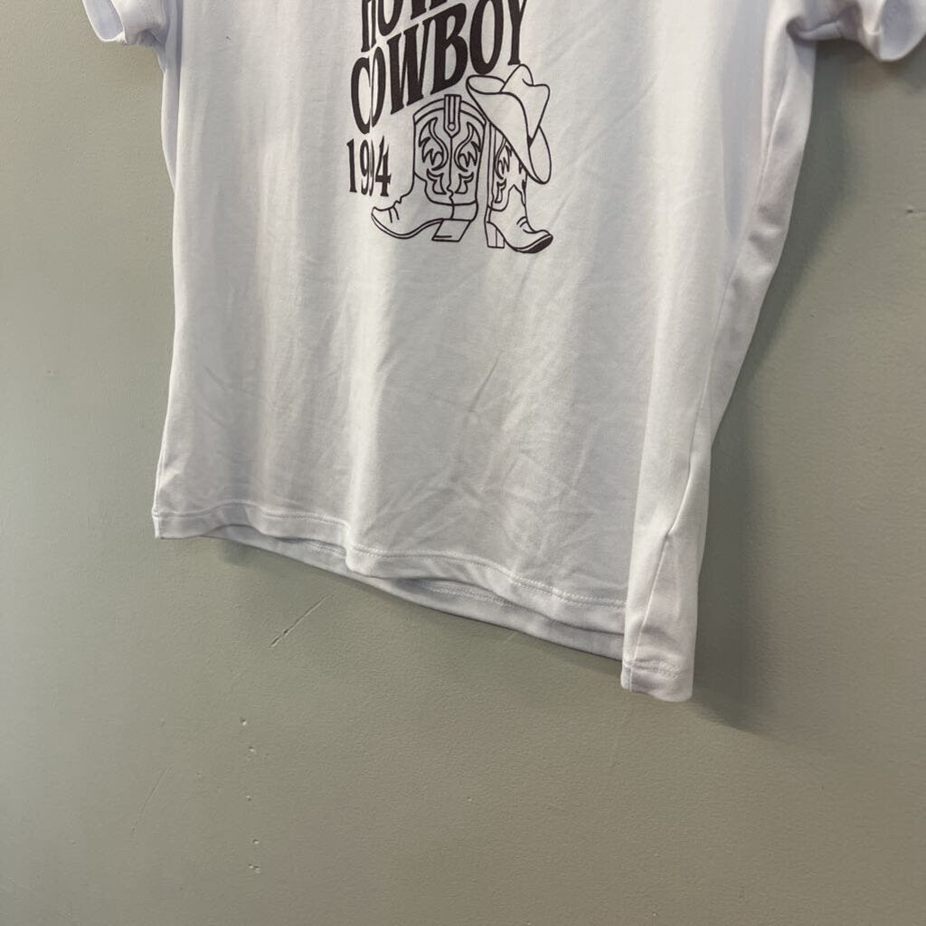 Harper and Ivy White/ Brown Howdy Cowboy Short Sleeve Top Large