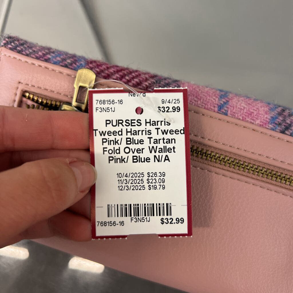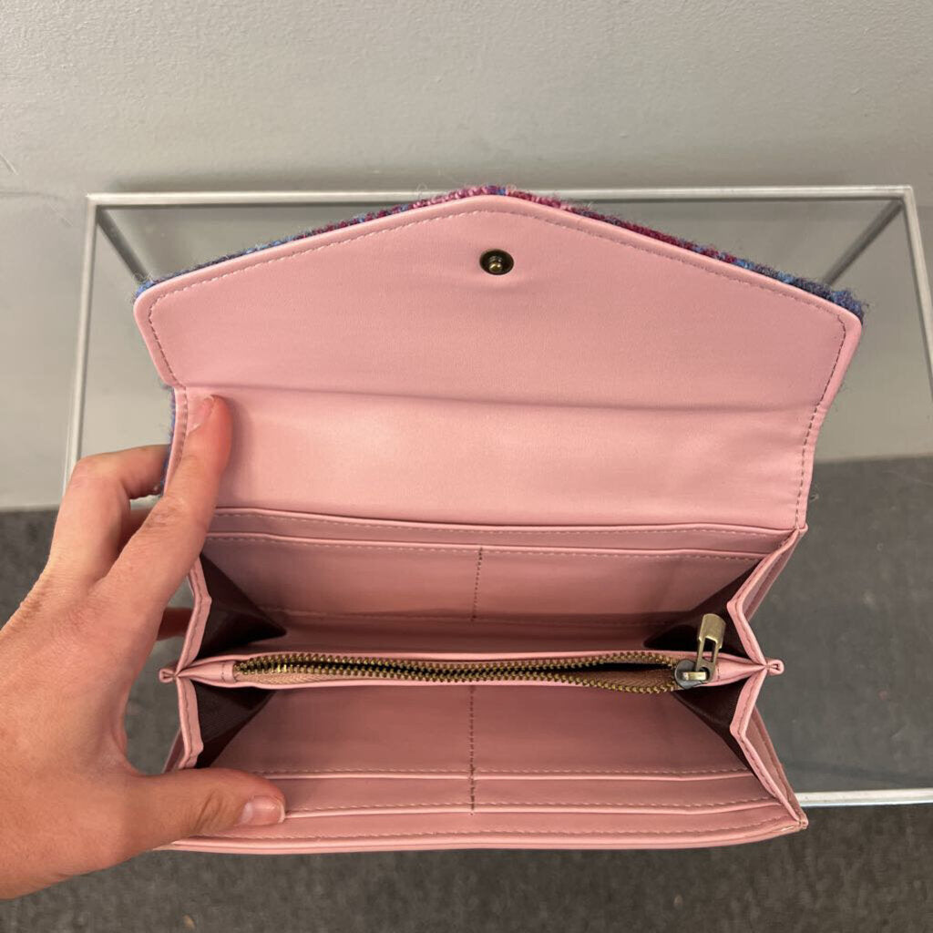 Harris Tweed Pink/ Blue Tartan Fold Over Wallet
