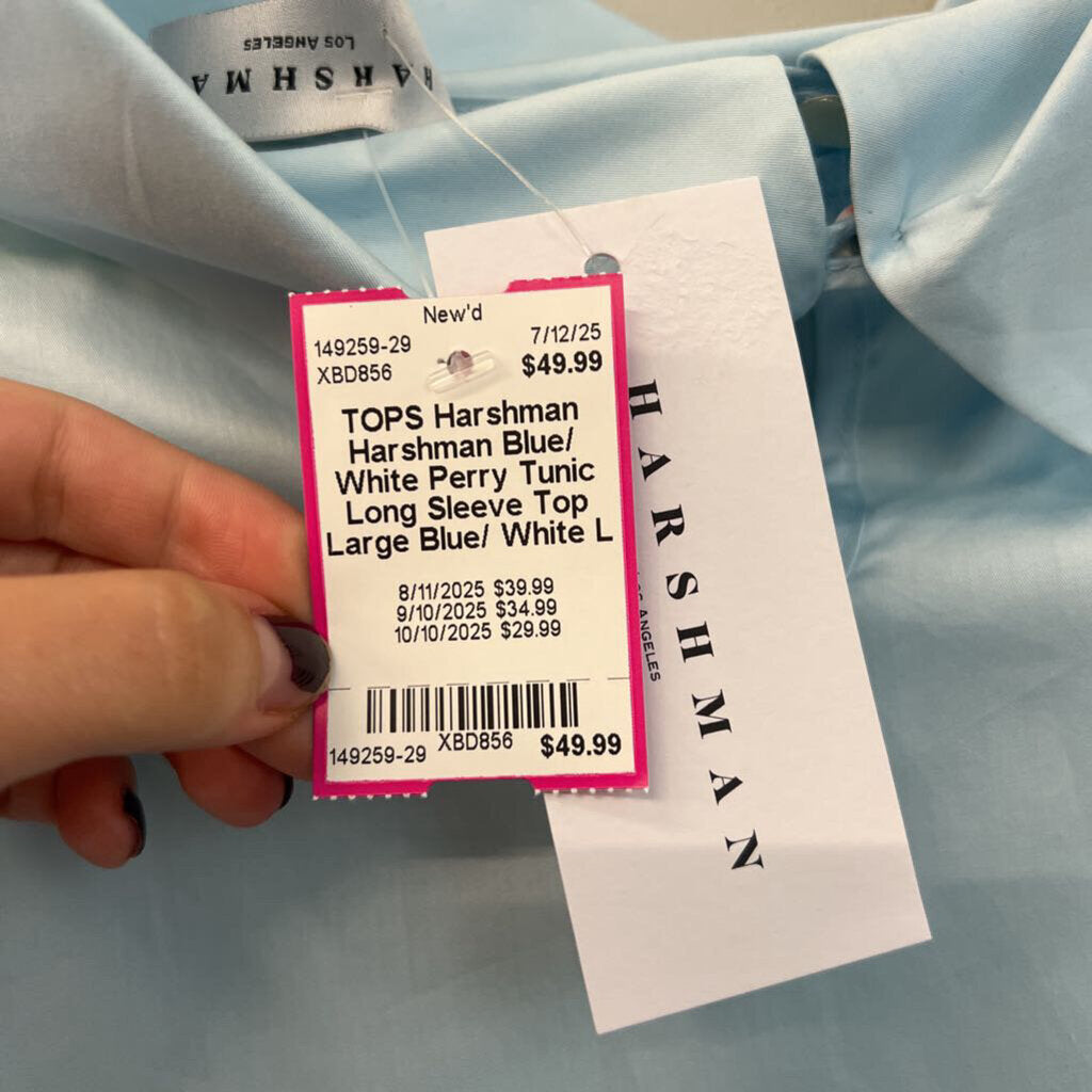 Harshman Blue/ White Perry Tunic Long Sleeve Top Large