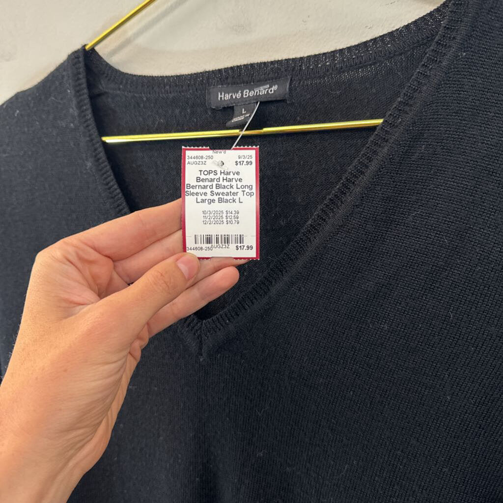 Harve Bernard Black Long Sleeve Sweater Top Large