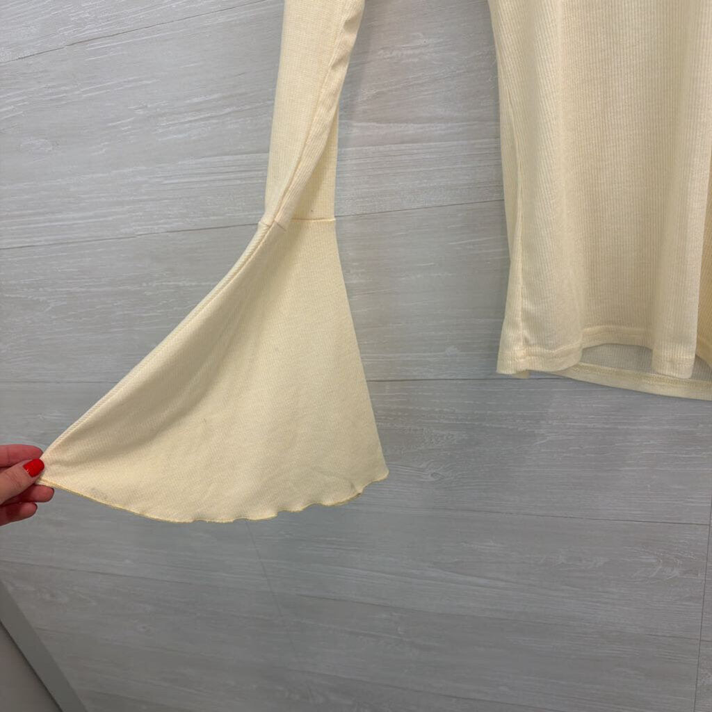 Hayden Cream Ribbed Long Bell Sleeve Top Large