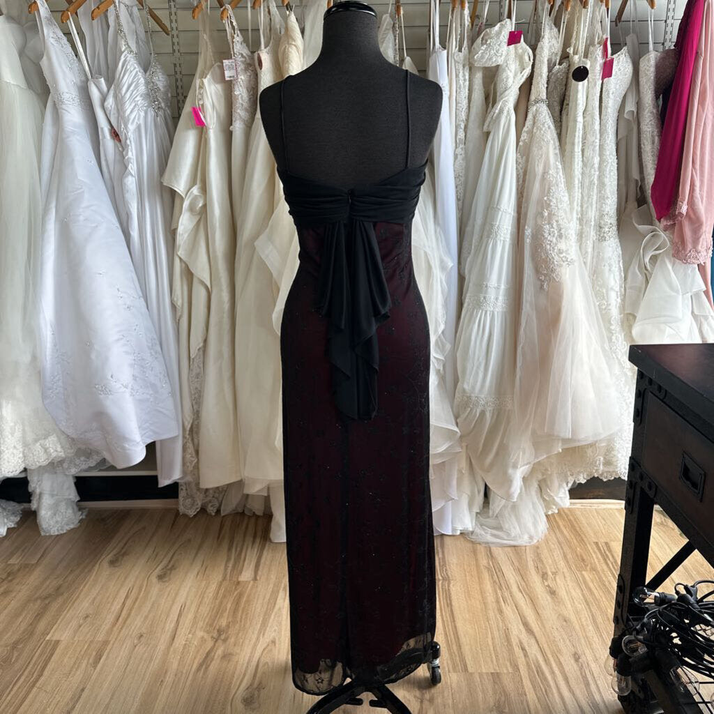 Helene Blake Evening Red/ Black Sparkle Print Overlay Long Formal Dress 12