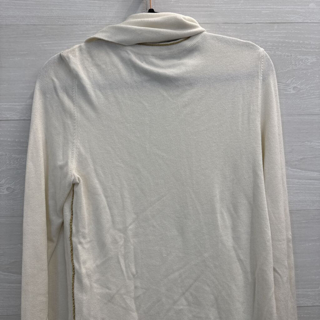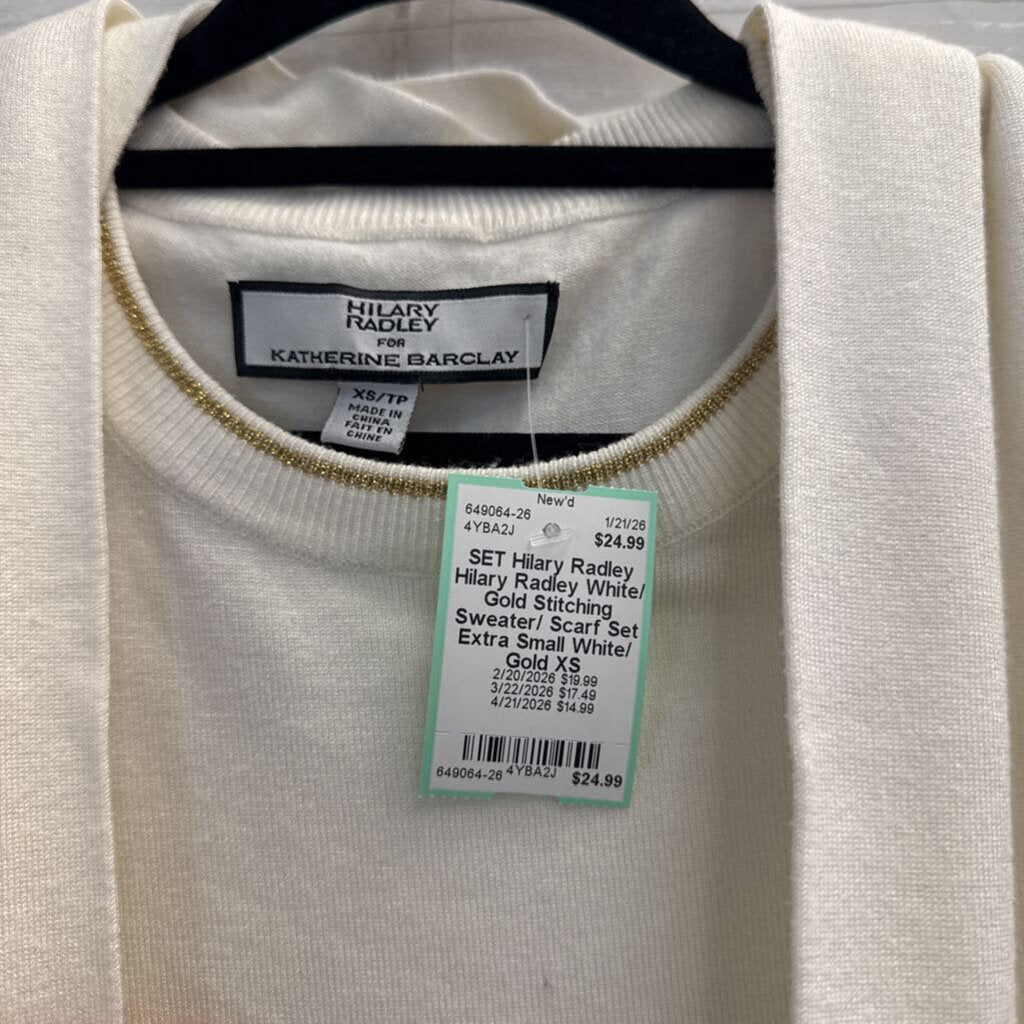 Hilary Radley White/ Gold Stitching Sweater/ Scarf Set Extra Small