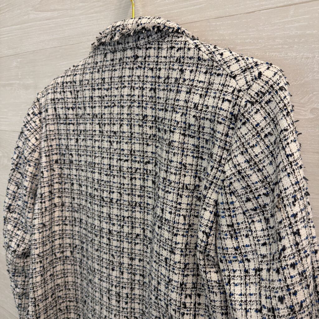 H&M Black/ White Tweed Cropped Open Front Jacket 12