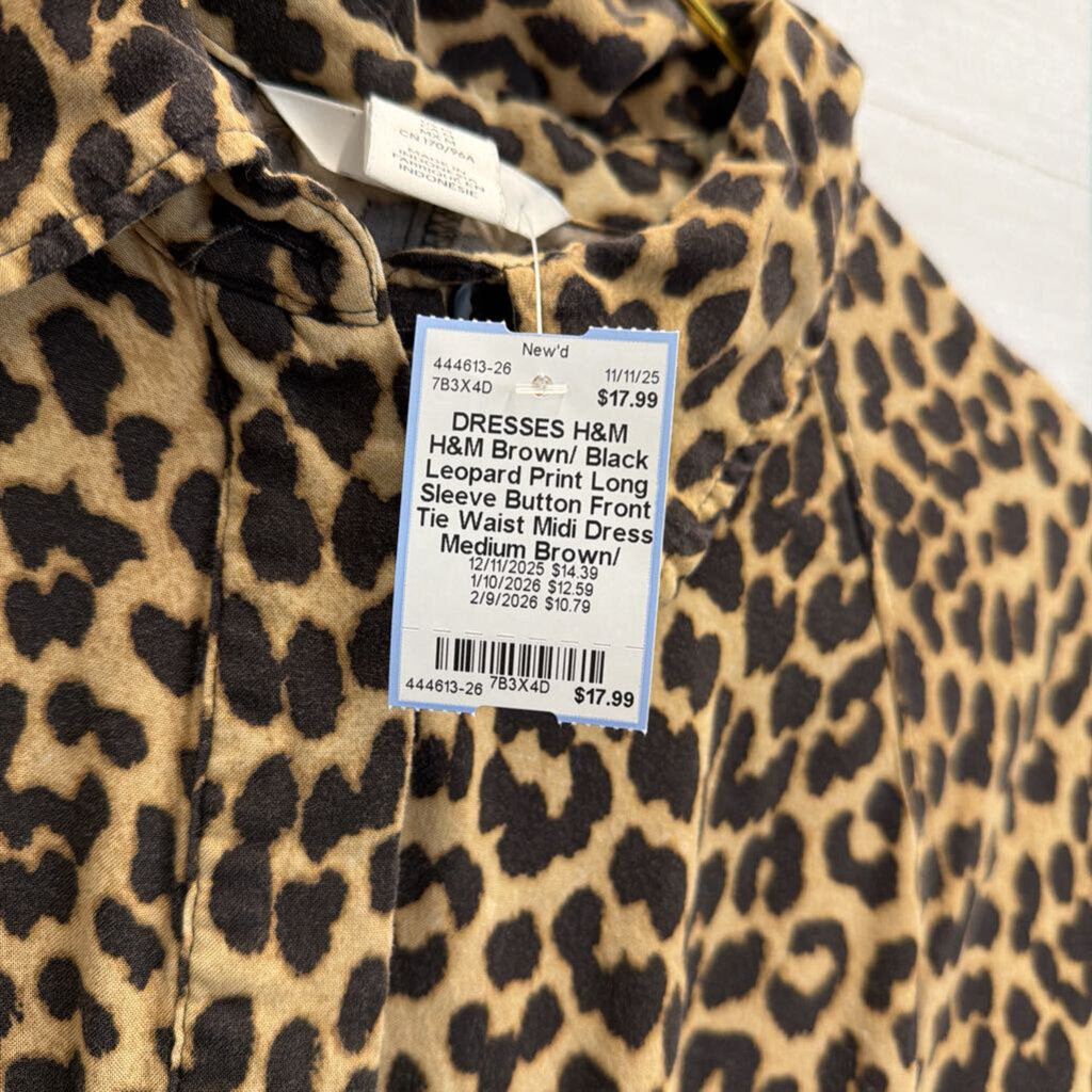 H&M Brown/ Black Leopard Print Long Sleeve Button Front Tie Waist Midi Dress Medium