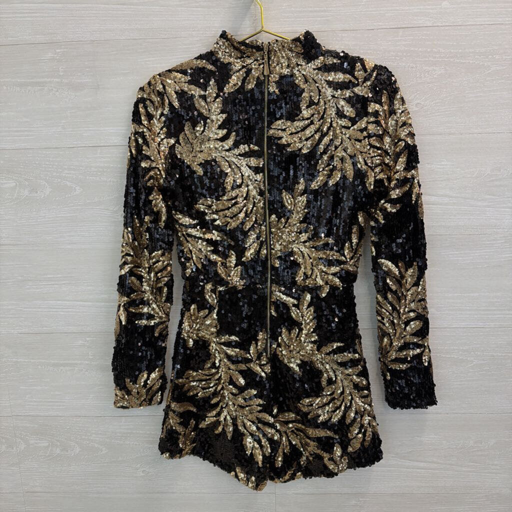 HMS Black/ Gold Sequin Print Long Sleeve Romper Small